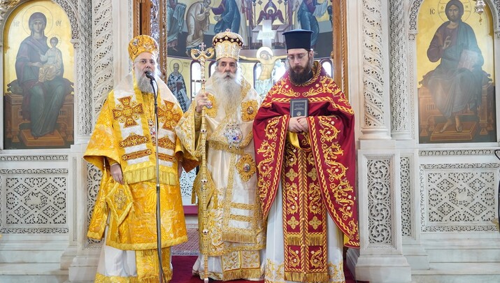 Τέλος, ο Σεβασμιώτατος ευχαρίστησε θερμά τον Σεβασμιώτατο Μητροπολίτη Τρίκκης, Γαρδικίου και Πύλης κ. Χρυσόστομο, τον Θεοφιλέστατο Επίσκοπο Αχελώου κ. Νήφωνα, καθώς και «τους πατέρες και αδελφούς μου εν Κυρίω, συμπρεσβυτέρους και συνδιακόνους για την σημερινή μεγάλη χαρά και για την σημερινή αίνεση προς τον Κύριο των Δυνάμεων, τον Αρχηγό και τελειωτή Ιησού, τον Σωτήρα των ψυχών και των σωμάτων ημών».