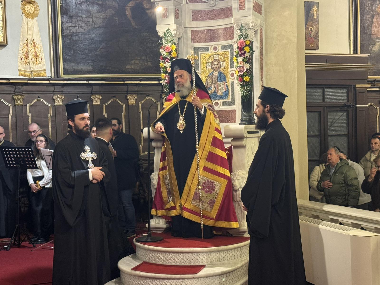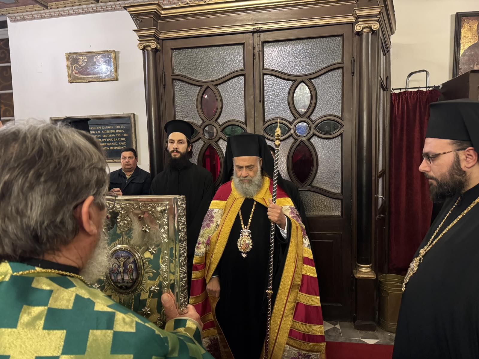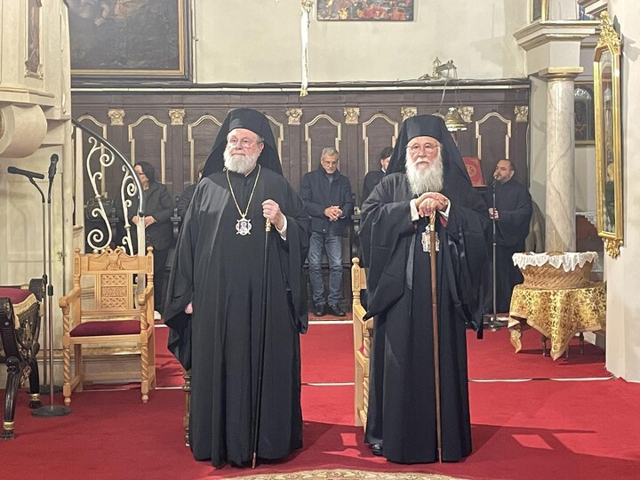 Στον Εσπερινό χοροστάτησε ο Σεβασμιώτατος Μητροπολίτης Θεσσαλιώτιδος και Φαναριοφερσάλων κ. Τιμόθεος, Κερκυραίος στην καταγωγή, ο Σεβασμιώτατος Μητροπολίτης Αχαΐας κ. Αθανάσιος και ο οικείος ποιμενάρχης Σεβασμιώτατος Μητροπολίτης Κερκύρας, Παξών και Διαποντίων Νήσων κ. Νεκτάριος.