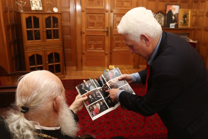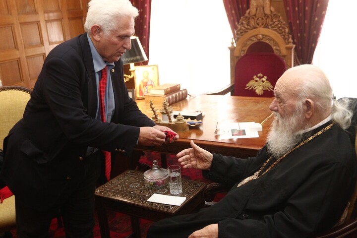 Αρχικά, ο Μακαριώτατος υποδέχθηκε τον πρώην Δήμαρχο Αθηναίων κ. Κώστα Μπακογιάννη, με τον οποίο συζήτησαν θέματα κοινού ενδιαφέροντος, εστιάζοντας στη διαχρονική συνεργασία της Τοπικής Αυτοδιοίκησης με την Εκκλησία.