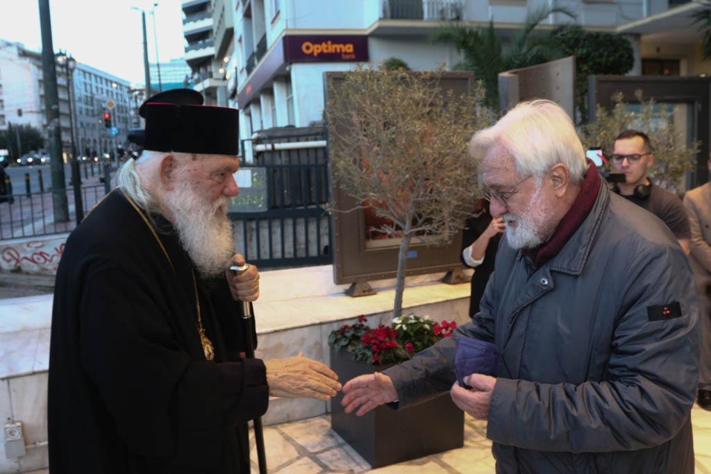 Τον Μακαριώτατο συνόδευαν ο Θεοφιλέστατος Επίσκοπος Ταλαντίου κ. Θεολόγος, ο Γενικός Αρχιερατικός Επίτροπος της Ιεράς Αρχιεπισκοπής Αθηνών, Αιδεσιμολογιώτατος Πρωτοπρεσβύτερος π. Εμμανουήλ Παπαμικρούλης, ο Γενικός Διευθυντής του Φιλανθρωπικού Οργανισμού της Ιεράς Αρχιεπισκοπής Αθηνών «Αποστολή», κ. Κωνσταντίνος Δήμτσας, ο Διευθυντής του Ιδιαιτέρου Γραφείου του, κ. Ιωάννης Τσούρας, ο Διευθυντής του Γραφείου Ενημερώσεως, Επικοινωνίας και Τύπου και Εκπρόσωπος Τύπου του, κ. Χάρης Κονιδάρης και ο Καλλιτεχνικός Διευθυντής της Ορχήστρας «ΚΑΝΩΝ» της Ιεράς Αρχιεπισκοπής Αθηνών, κ. Γεώργιος Δεμελής.