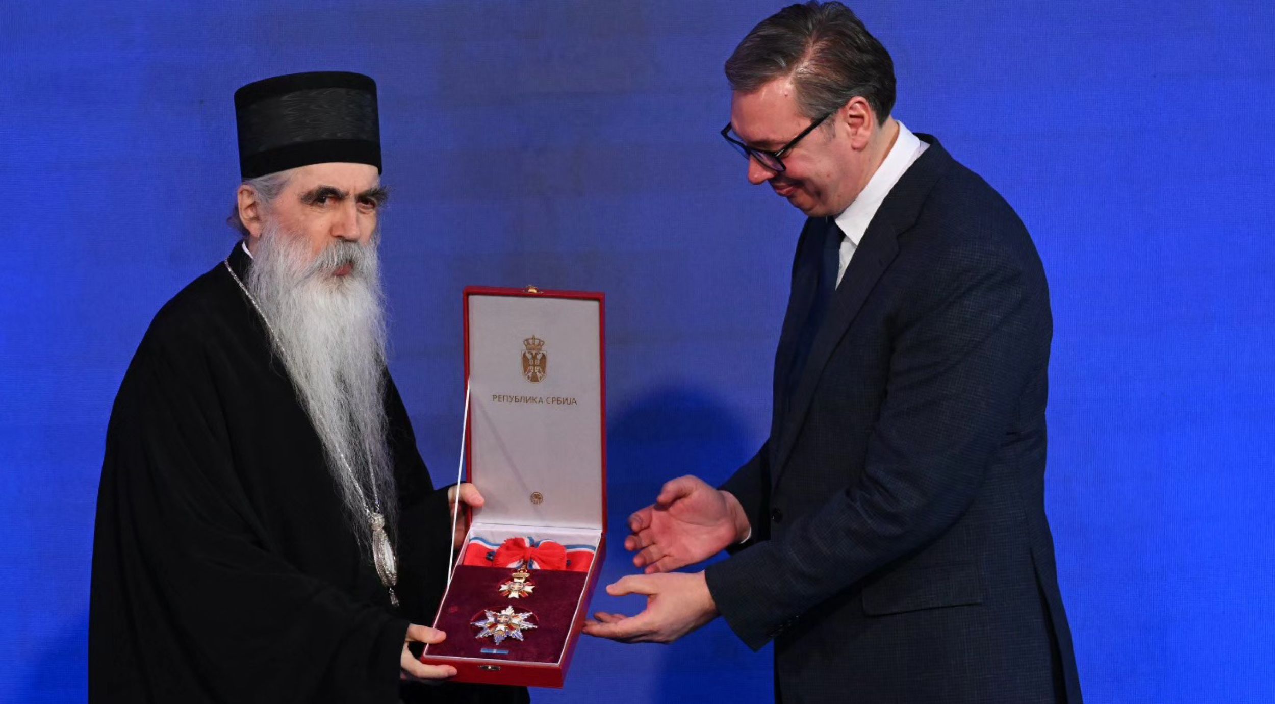 Ο Πρόεδρος Αλεξάνταρ Βούτσιτς τίμησε τον Σεβασμιώτατο για την προσφορά του στον πολιτισμό και την πνευματική ανάπτυξη της χώρας, παρουσία του Πατριάρχη Σερβίας Πορφυρίου.