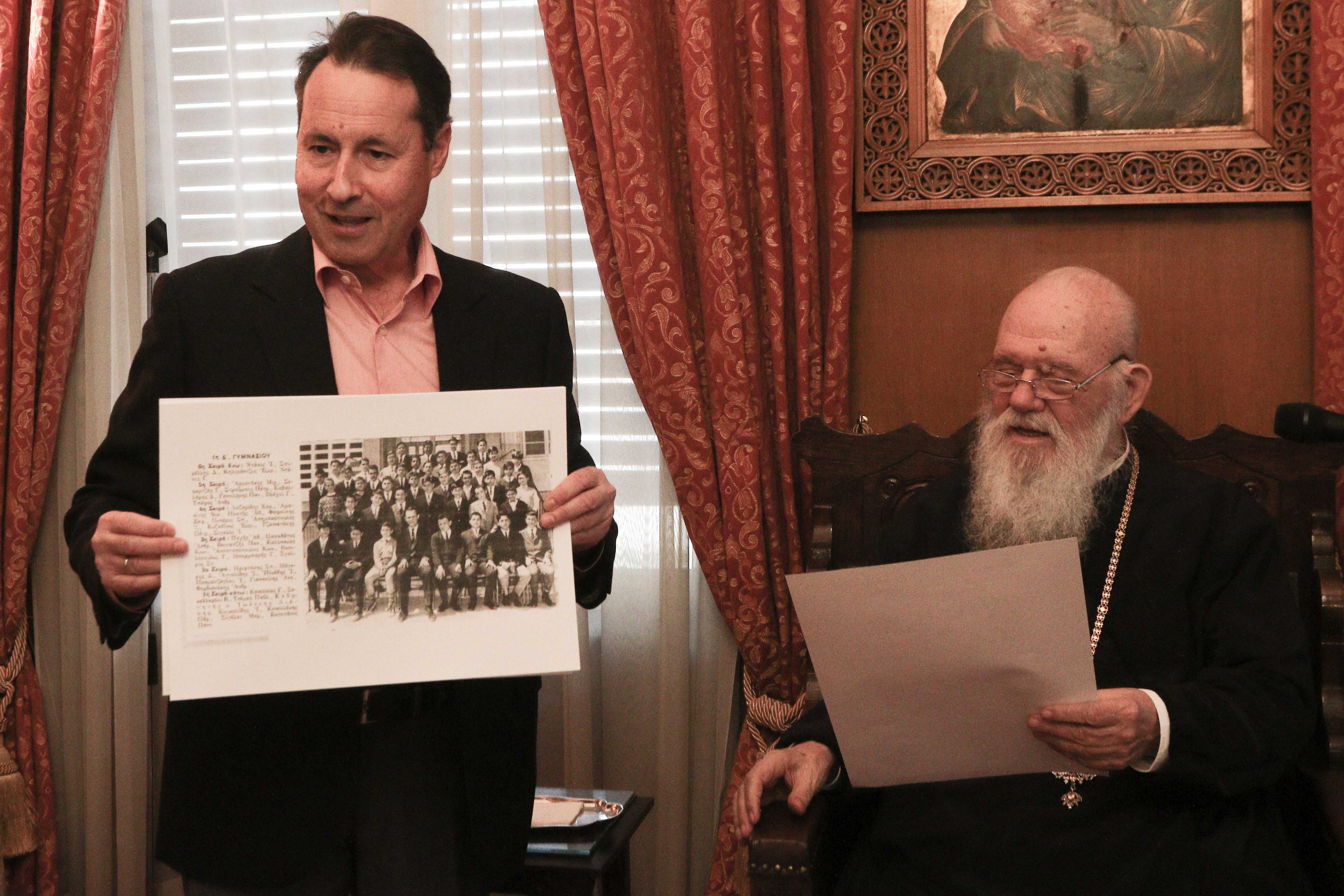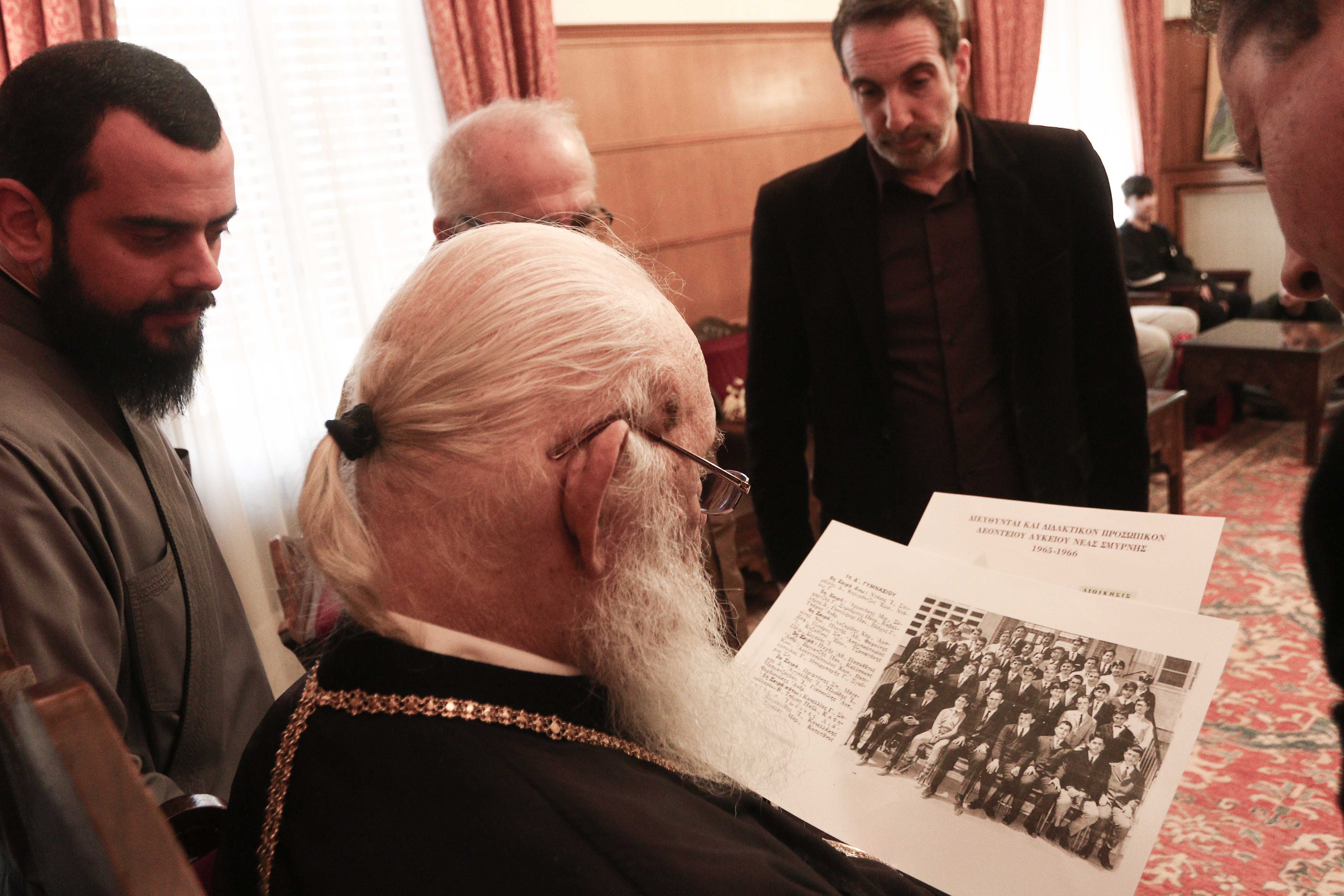Ιδιαίτερη στιγμή της ημέρας αποτέλεσε η συνάντηση με το Γυμνάσιο της Λεοντείου Σχολής Νέας Σμύρνης, όπου ο Αρχιεπίσκοπος εργάστηκε ως φιλόλογος τη δεκαετία του '70. Οι σημερινοί καθηγητές τού προσέφεραν σπάνιο αρχειακό υλικό και φωτογραφίες από την εποχή που ο λαϊκός τότε καθηγητής, Ιωάννης Λιάπης, υπέγραφε στα αναμνηστικά των μαθητών του.