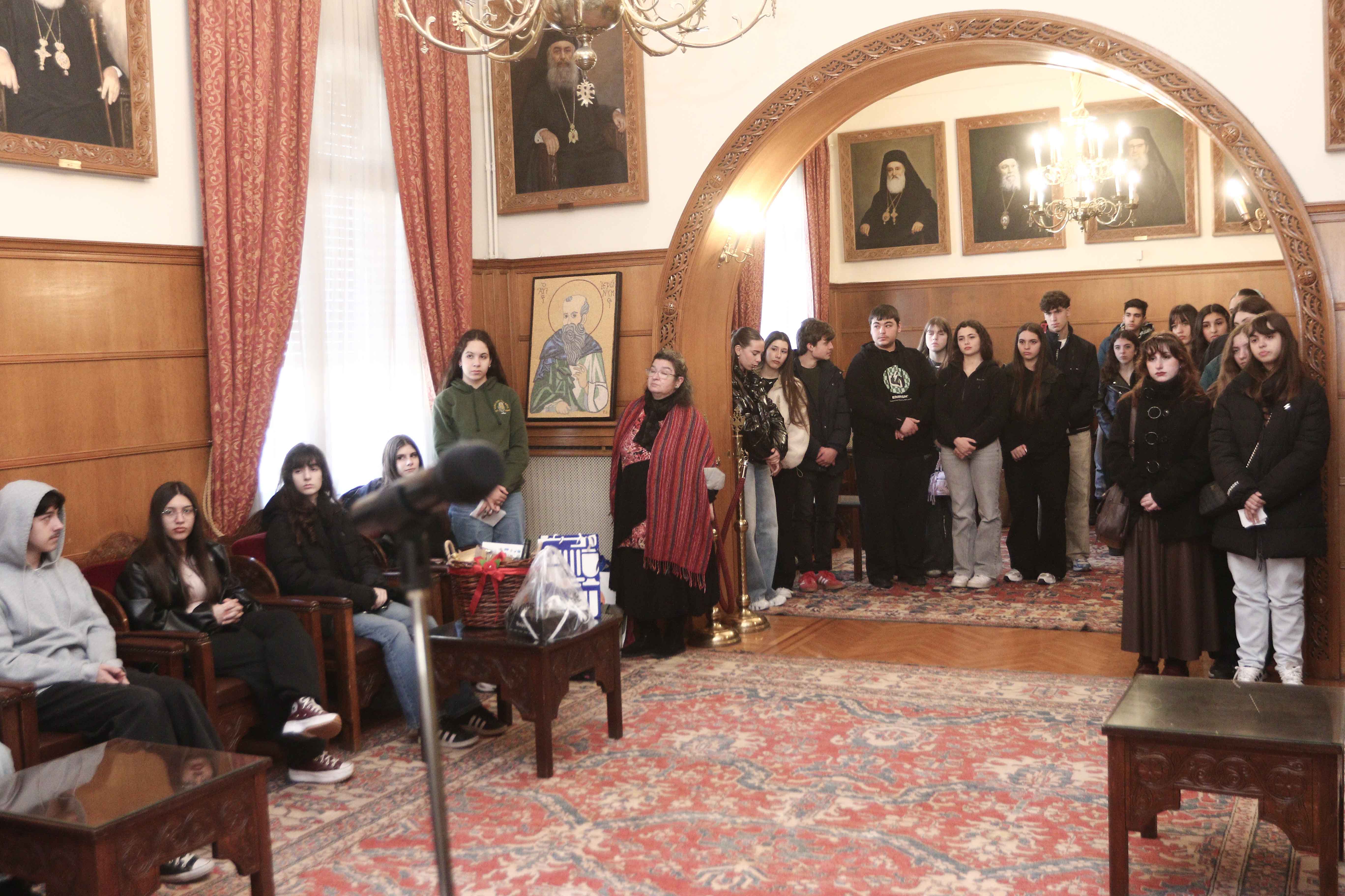 Στη συνέχεια, ο Μακαριώτατος υποδέχθηκε μαθητές από το Γυμνάσιο Αλιβερίου. Με έντονο ενδιαφέρον ενημερώθηκε για τα θέματα της περιοχής και τα όνειρα των μαθητών, σημειώνοντας χαρακτηριστικά: «Η ζωή ομορφαίνει όταν εμπνεόμαστε από τη νέα γενιά». Στη συζήτηση τέθηκε και το ζήτημα της απομάκρυνσης των νέων από το βιβλίο λόγω της κυριαρχίας των ηλεκτρονικών μέσων, ένας προβληματισμός που εκφράστηκε από παριστάμενο εκπαιδευτικό.