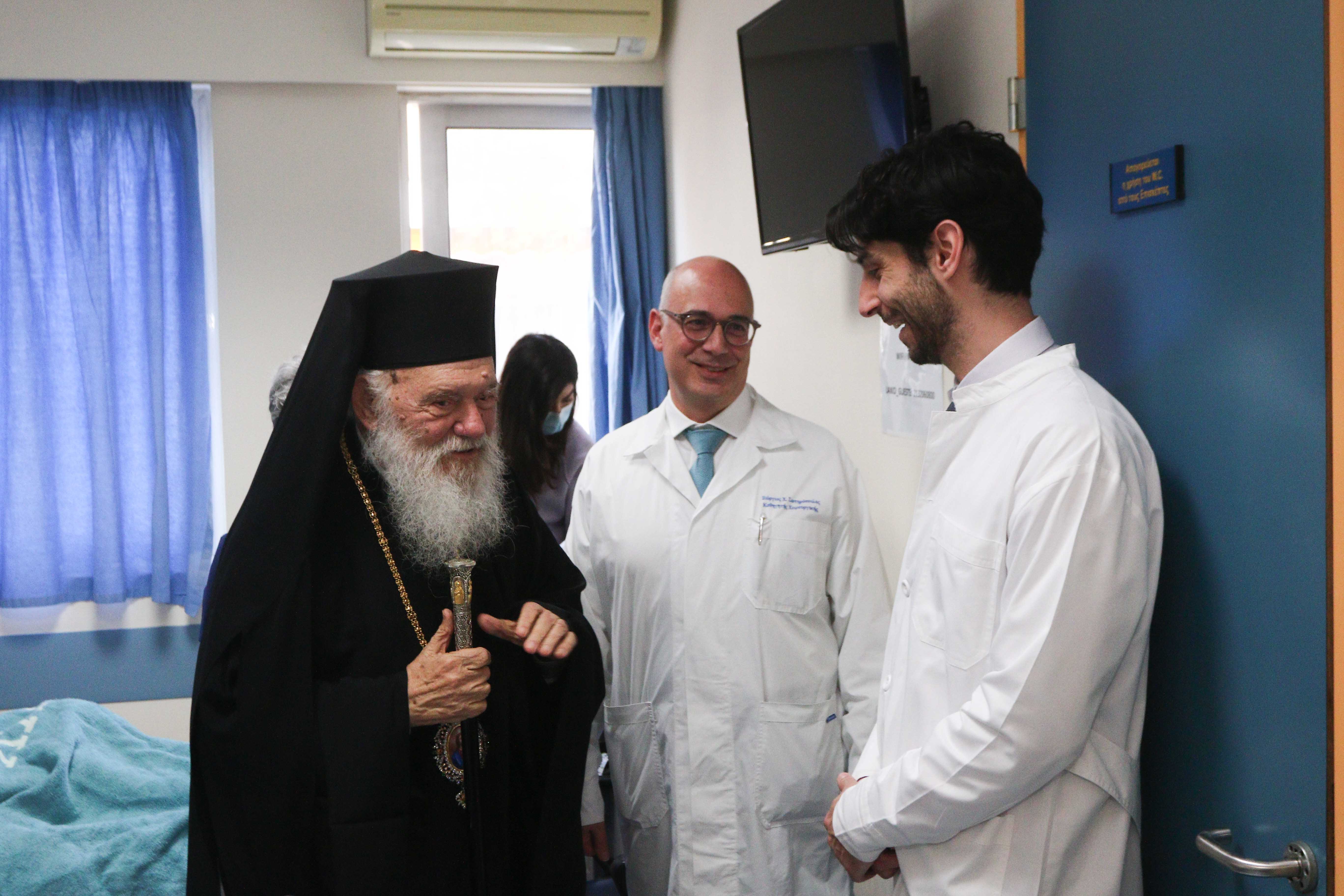 Τον Μακαριώτατο συνόδευε ο Θεοφιλέστατος Επίσκοπος Τανάγρας κ. Απόστολος, ενώ στην τελετή παρέστησαν, επίσης, ο Πρύτανης του ΕΚΠΑ κ. Γεράσιμος Σιάσος, η Κοσμήτορας της Σχολής Επιστημών Υγείας του ΕΚΠΑ κυρία Ελένη Λάγιου, ο Πρόεδρος της Ιατρικής Σχολής του ΕΚΠΑ κ. Νικόλαος Αρκαδόπουλος, η Διοικήτρια της 1ης ΥΠΕ κυρία Όλγα Μπαλαούρα, ο Διοικητής του «Λαϊκού» Νοσοκομείου κ. Θεοφάνης Ροΐδης, καθώς και εργαζόμενοι του Νοσηλευτικού Ιδρύματος.