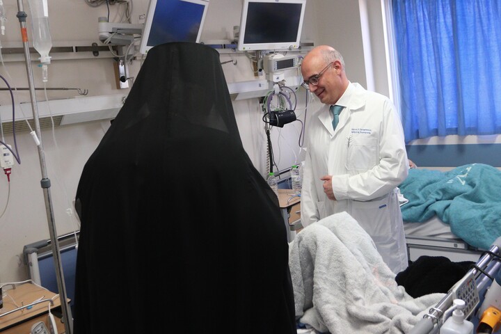 «Βρίσκομαι ανάμεσα σε εκλεκτούς λειτουργούς και σε χέρια ανθρώπων που αγωνίζονται να μας χαρίσουν ζωή», ανέφερε εμφανώς συγκινημένος.