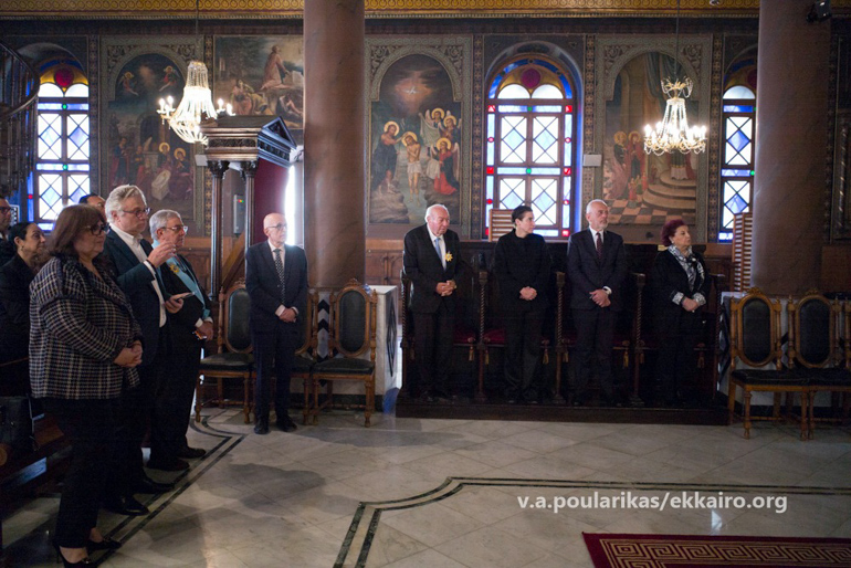 Στη Θεία Λειτουργία παρέστησαν ο Εξοχώτατος Πρέσβης της Ελλάδος στην Αίγυπτο κ. Νικόλαος Παπαγεωργίου, η Εξοχωτάτη Πρέσβης της Κυπριακής Δημοκρατίας στην Αίγυπτο κα. Πόλυ Ιωάννου, καθώς και εκπρόσωποι της ελληνικής παροικίας και των συλλογικών φορέων της πόλεως, τιμώντας με την παρουσία τους την ιερή αυτή ημέρα.