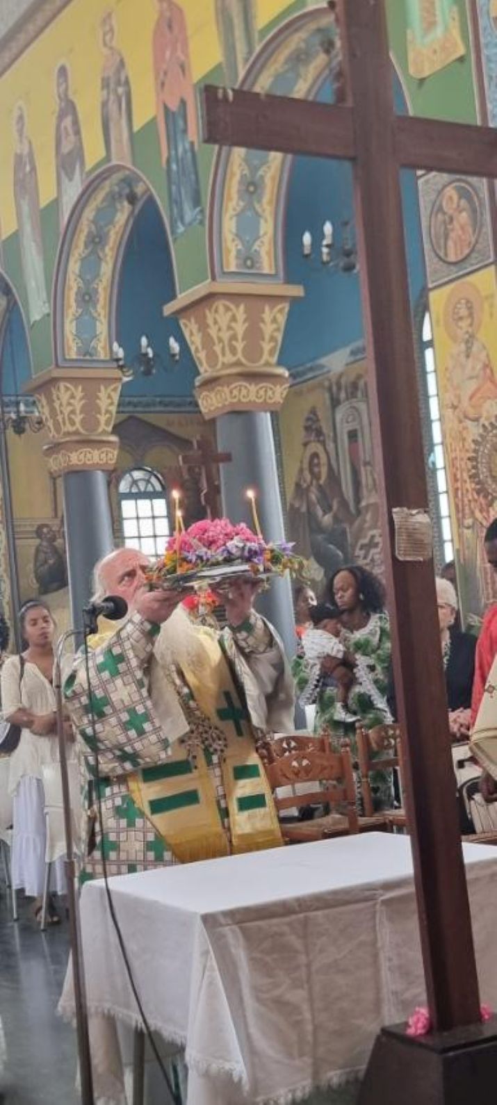 Μαζί του λειτούργησαν ο Πρωτοσυγκελλος Αρχιμ. Γεράσιμος, ο Αρχιμ. Νικηφόρος, ο Αρχιδιάκονος Παΐσιος και οι Διάκονοι Ιερόθεος και Νικηφόρος. Συμπροσευχόμενος ο Πρόεδρος της Ελληνικής Κοινότητας Κινσάσας κ. Γεράσιμος Ντούνης.