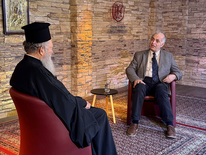Στο «Ενοριακό Αρχονταρίκι» του Ιερού Ναού Ευαγγελιστρίας Πειραιώς και στο πλαίσιο των εκδηλώσεων «Ευαγγελίστρια 2026», την Δευτέρα 16 Μαρτίου ο Ηλίας Λιαμής, Δρ. Θεολογίας, Μουσικολόγος και Συγγραφέας, φιλοξένησε τον Σεβασμιώτατο Μητροπολίτη Χαλκίδος, Ιστιαίας και Βορείων Σποράδων κ. Χρυσόστομο, σε μια συζήτηση με θέμα «Αγιασμένες μορφές: Όσιος Ιάκωβος (Τσαλίκης)».