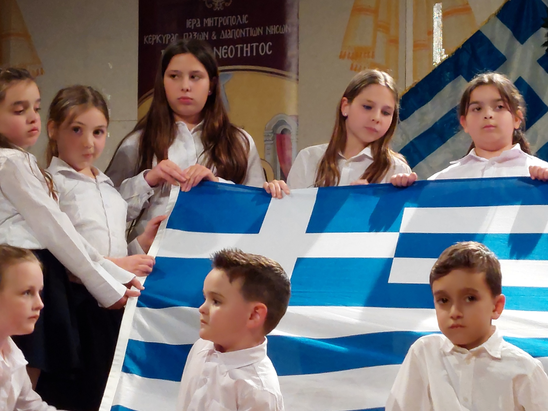 Μεγάλη εκδήλωση νεολαίας στην Κέρκυρα για την 25η Μαρτίου, με έντονη συμμετοχή παιδιών και μήνυμα πίστης, ιστορικής μνήμης και εθνικής ταυτότητας.
