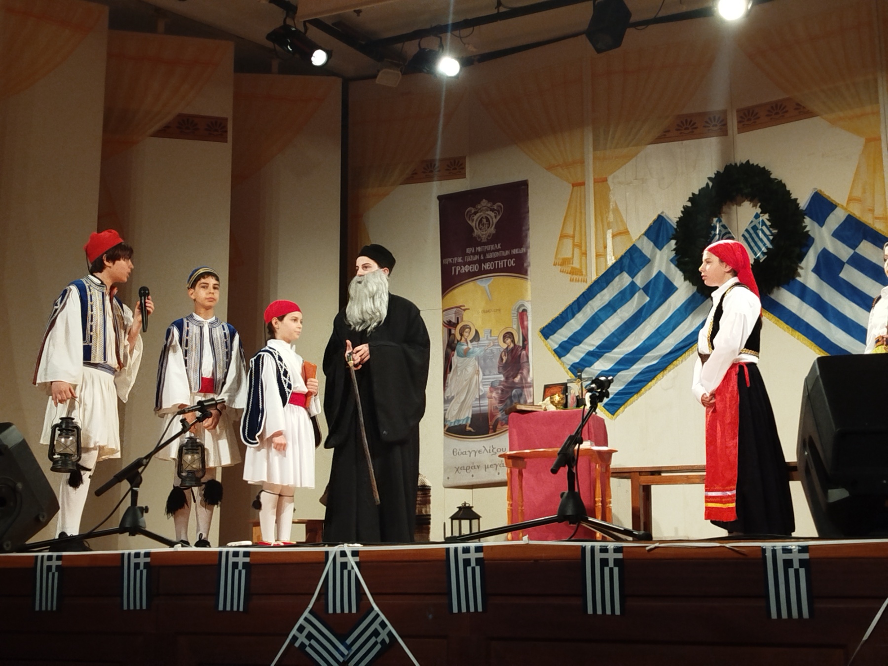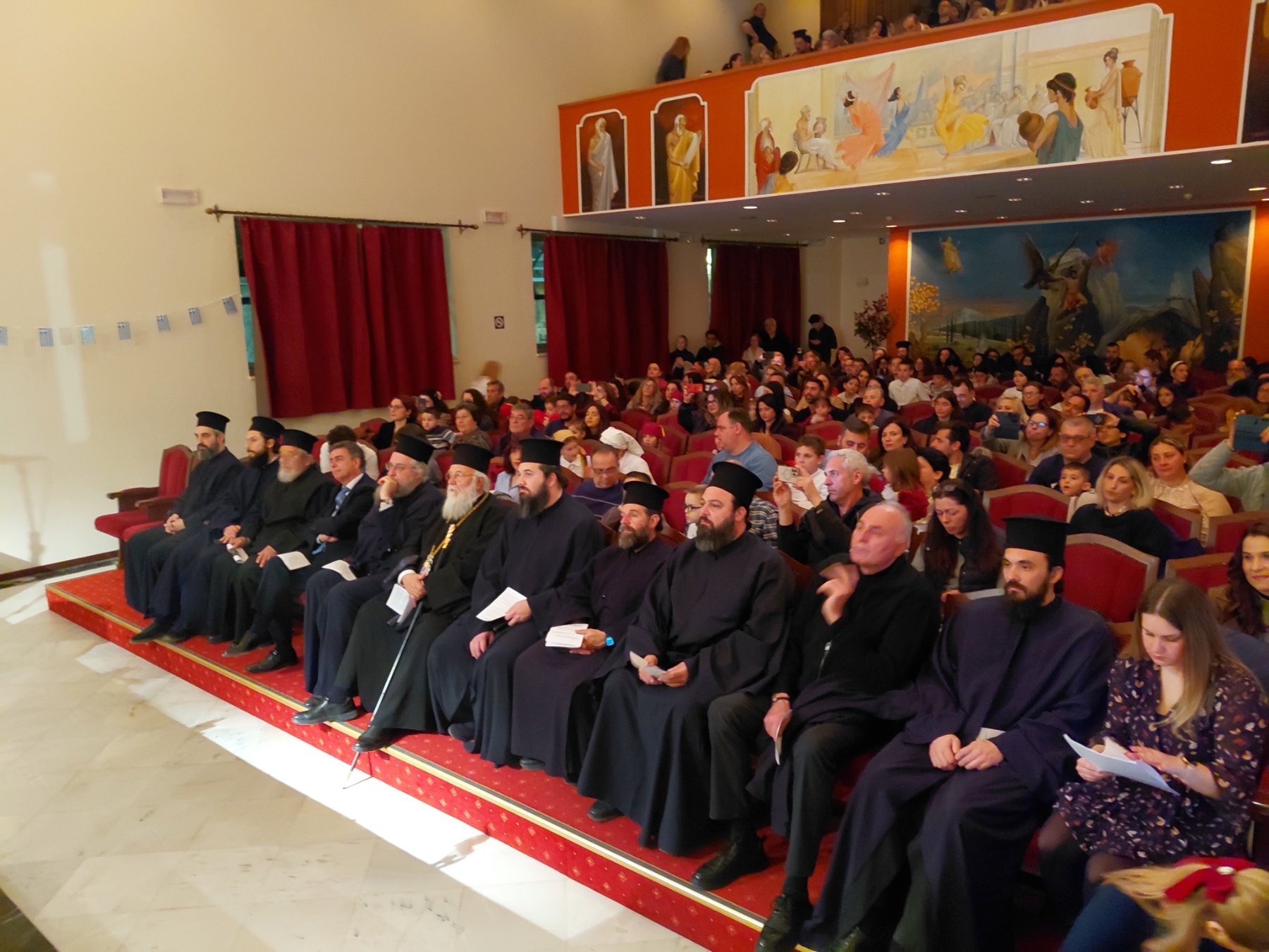 Στο Αμφιθέατρο του Ιδρύματος Χρονίως Πασχόντων Η ΠΛΑΤΥΤΕΡΑ έγινε το απόγευμα του Σαββάτου 21 Μαρτίου 2026, διοργανωμένη από το Γραφείο Νεότητος της τοπικής Εκκλησίας, μεγάλη εκδήλωση των Κατηχητικών συνάξεων και των νέων της Ιεράς Μητροπόλεως Κερκύρας, αφιερωμένη στην Εθνική μας Επέτειο της 25ης Μαρτίου. Ο παλμός ήταν έντονος, ενώ τα παιδιά που συμμετείχαν έδωσαν με εξαιρετική διάθεση και ωραίες ερμηνείες, γόνιμους προβληματισμούς στο κοινό που με αθρόα προσέλευση κατέκλυσε τον χώρο.