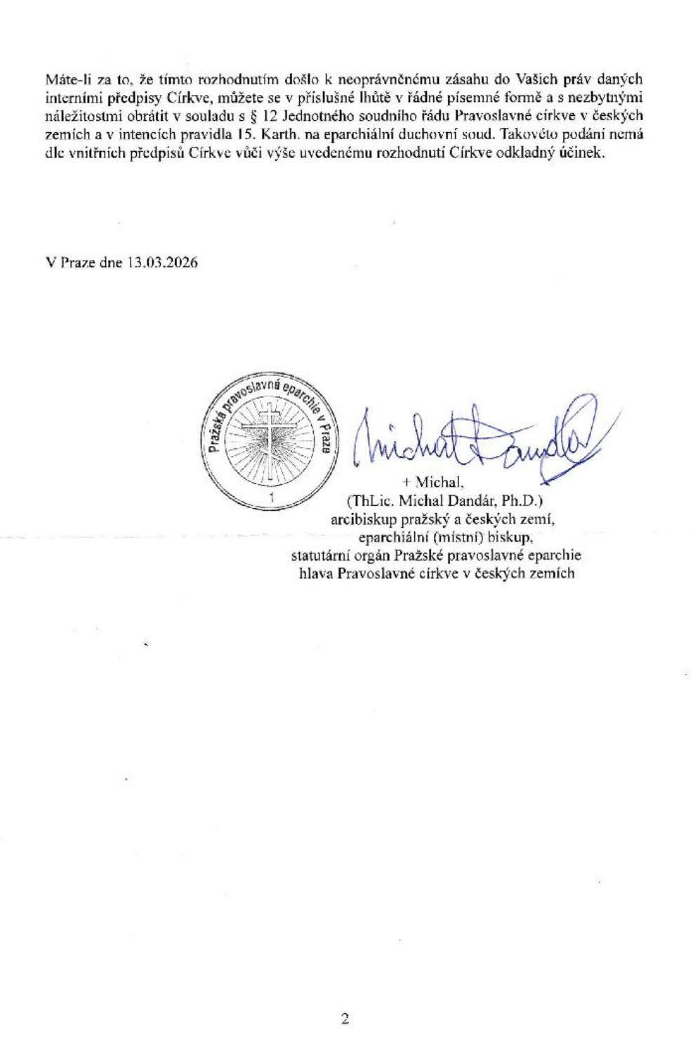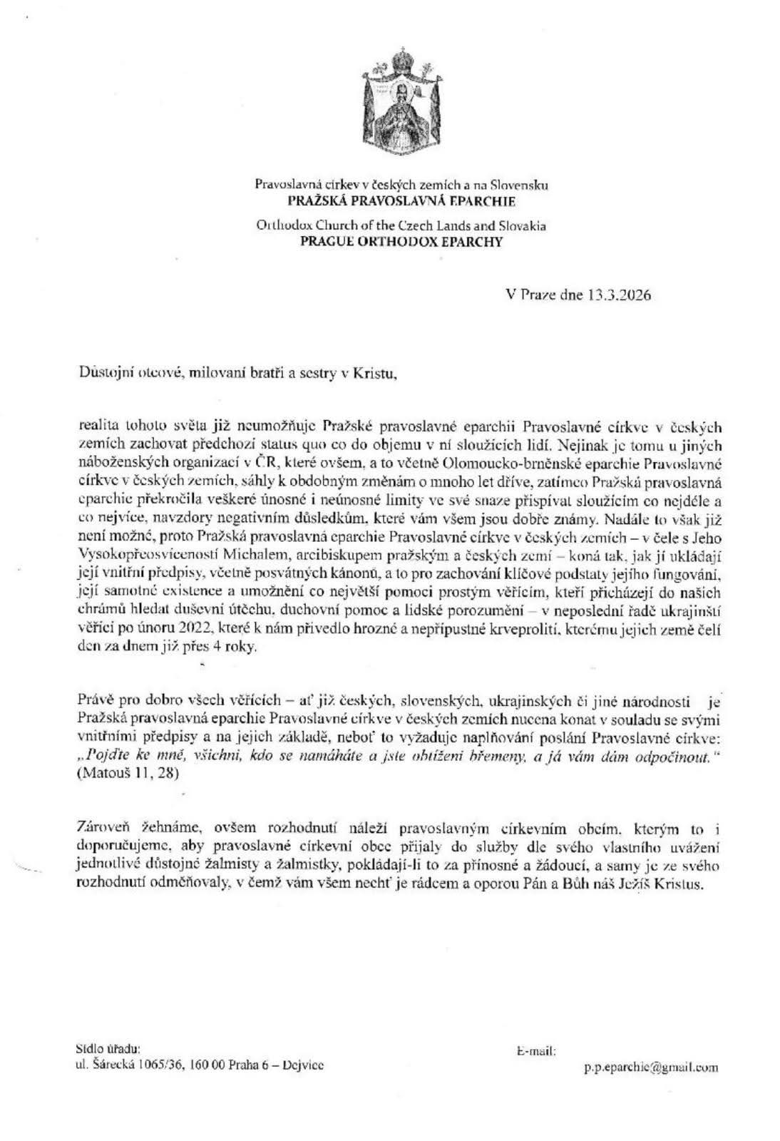 Στα όριά της η Ορθόδοξη Εκκλησία της Τσεχίας. Ο Αρχιεπίσκοπος Μιχαήλ προχωρά σε περικοπές προσωπικού, καλώντας τις ενορίες να αναλάβουν τη μισθοδοσία των κληρικών τους.