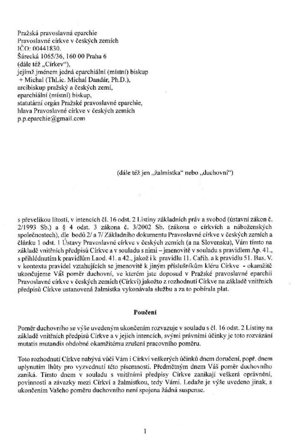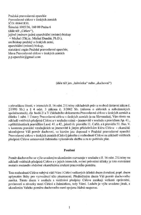 Νωρίτερα η ΕΟΔ έγραψε ότι η Εκκλησία της Τσεχίας απειλείται να χάσει τρεις σημαντικές ενορίες στην Πράγα.