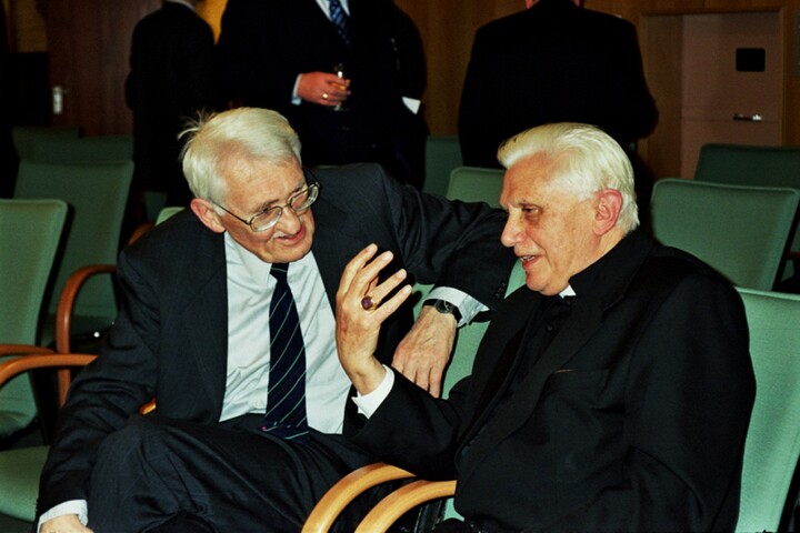 Ίσως και για αυτόν τον λόγο, ο Habermas απασχολήθηκε στις τελευταίες δεκαετίες της ζωής του ιδιαίτερα με τον στοχασμό γύρω από τη σχέση πίστης και λογικής. Ένα δημόσιο αποκορύφωμα αυτής της αντιπαράθεσης υπήρξε μια εξαιρετικά θετική ανταλλαγή απόψεων με τον καρδινάλιο Joseph Ratzinger, τον μετέπειτα πάπα Βενέδικτο ΙΣΤ΄. Σε αυτή την ανταλλαγή, όπως και σε μεταγενέστερα έργα του, ο Habermas υποστήριξε τη θέση ότι η κοσμική κοινωνία είναι, τουλάχιστον για τη διατύπωση δεσμευτικών ηθικών κανόνων, εξαρτημένη από τη θρησκεία – και ειδικότερα από τον χριστιανισμό, του οποίου από τη μεταφυσική ουσία εξακολουθεί να τρέφεται η Δύση.