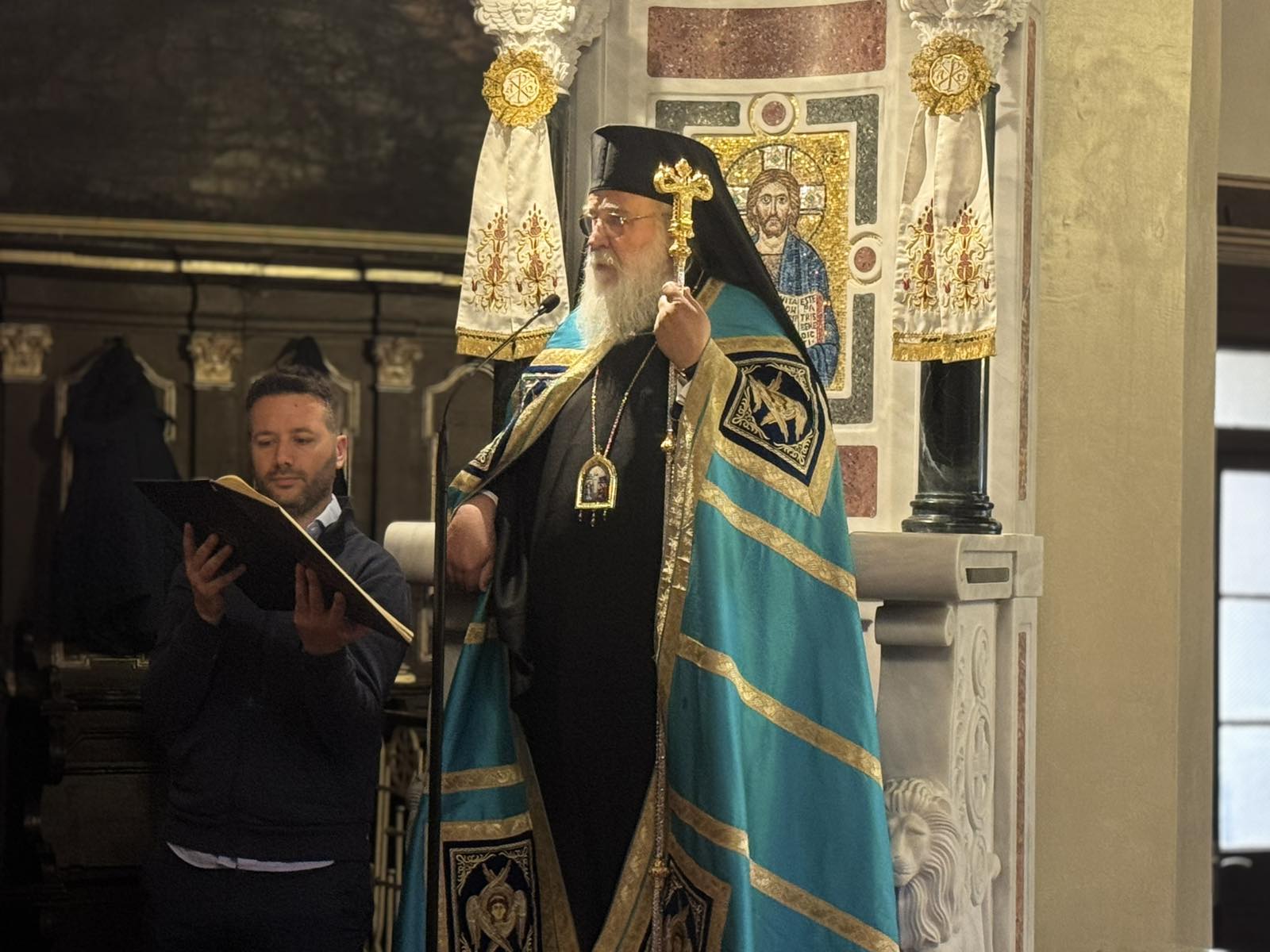 Λαμπρός Εσπερινός και λιτανεία στην Ευαγγελίστρια Ποταμίου Λευκίμμης, με τον Μητροπολίτη Κερκύρας Νεκτάριο να εύχεται για το Γένος και την πίστη.