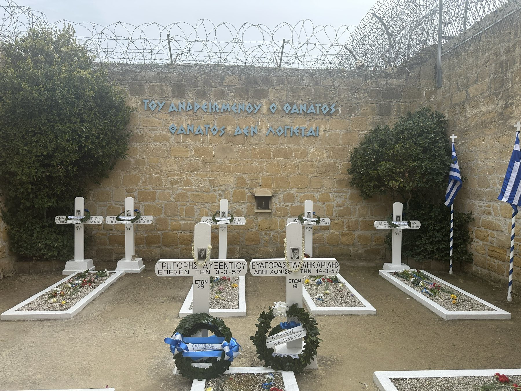 Με κατάνυξη και εθνική υπερηφάνεια, το προσκύνημα στα φυλακισμένα μνήματα της Λευκωσίας θυμίζει τη θυσία των 13 παλικαριών που βάδισαν στην αγχόνη ψάλλοντας τον Εθνικό Ύμνο.