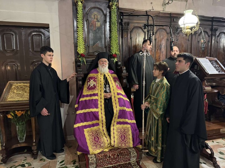 Στο Ιερό προσκύνημα του Αγίου Σπυρίδωνος τελέστηκε το απόγευμα του Σαββάτου 4 Απριλίου 2026 ο Πανηγυρικός Αρχιερατικός Εσπερινός, χοροστατούντος του Σεβασμιωτάτου Μητροπολίτου Κερκύρας, Παξών και Διαποντίων Νήσων κ. Νεκταρίου, για την εορτή των Βαΐων και την ανάμνηση του υπερφυούς θαύματος με το οποίο ο Άγιος Σπυρίδων έσωσε την Κέρκυρα από την πανώλη το 1630.