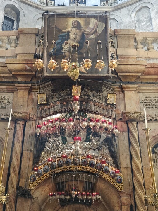 Ακολούθησε η περιφορά του Επιταφίου γύρω από τον Πανάγιο Τάφο και με το τέλος της λιτανείας ψάλθηκαν τα εγλώμια μπροστά από το κουβούκλιο.