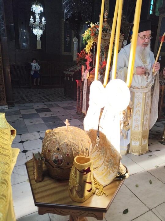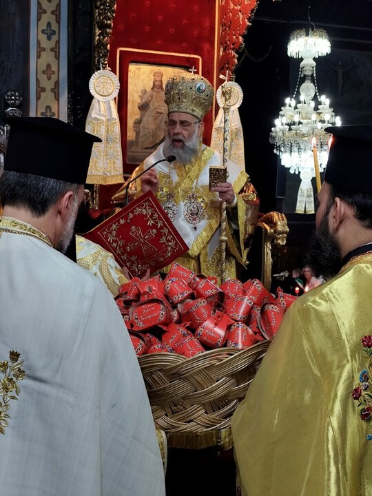Μετά το πέρας της ακολουθίας, ο Σεβασμιώτατος διένειμε το παραδοσιακό πασχαλινό αυγό στους πιστούς, ανταλλάσσοντας τον χαρμόσυνο χαιρετισμό «Χριστός Ανέστη!».
