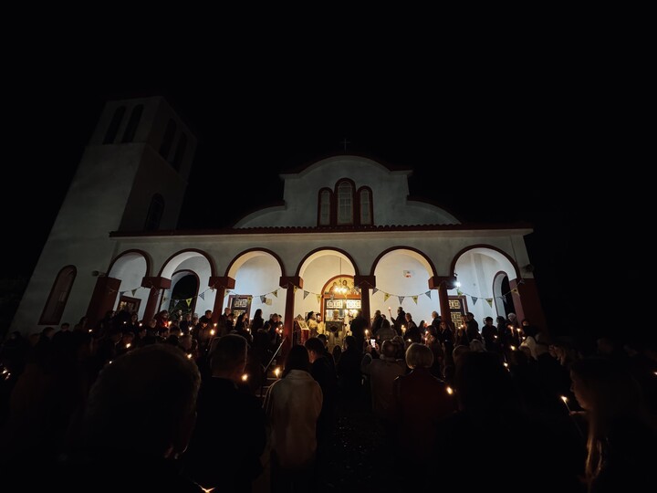 Κατά τη διάρκεια της Θείας Λειτουργίας, ανεγνώσθη η Πασχαλινή Εγκύκλιος του Σεβασμιωτάτου, ο Κατηχητικός Λόγος του Αγίου Ιωάννου του Χρυσοστόμου και ευλογήθηκαν τα πασχαλινά αυγά τα οποία διανεμήθηκαν στους πιστούς ως ευλογία.
