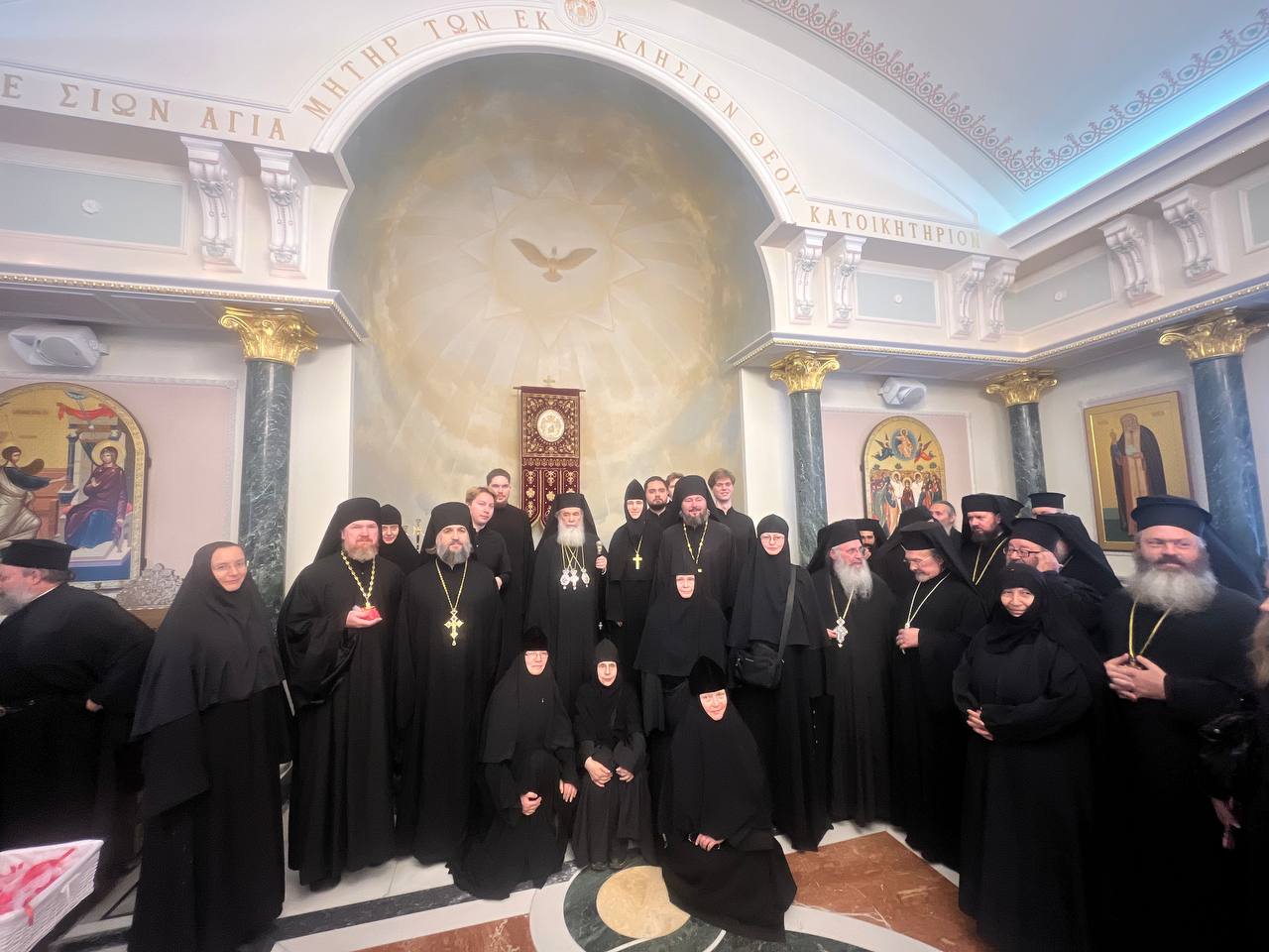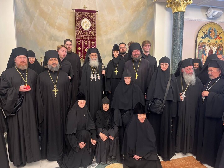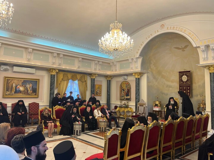 Η ρωσόφωνη χορωδία της ROCOR έψαλλε αναστάσιμους ύμνους και ο Πατριάρχης μοίρασε σε όλους τους παριστάμενους από ένα κόκκινο αυγό για ευλογία.