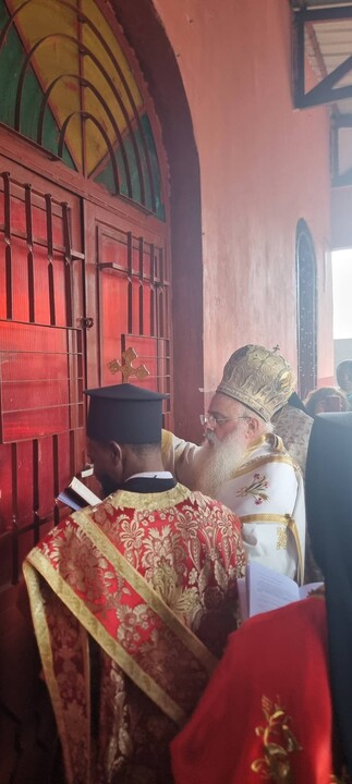 Ευχαρίστησε από καρδιάς τον μακαριστό προκάτοχο του για την ενορία που δημιούργησε και που σήμερα αποτελεί πνευματική κυψέλη, η οποία με το πνευματικό της μέλι γλυκαίνει τις ψυχές των ανθρώπων και σκορπά το φως της Ορθοδοξίας στις γύρω περιοχές. Στον ίδιο Ιερό Ναό εγκαινιάστηκε η δεξιά κόγχη του Ναού ως δεύτερη Αγία Τράπεζα επ ονόματι του Αγίου Μεγαλομάρτυρος Χριστοφόρου, αφού ο μακαριστός Επίσκοπος Ανδίδων Χριστοφόρος είχε από παλαιά βοηθήσει την Ιερά Μητρόπολη Κινσάσας.