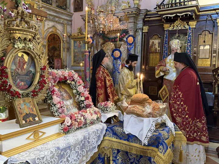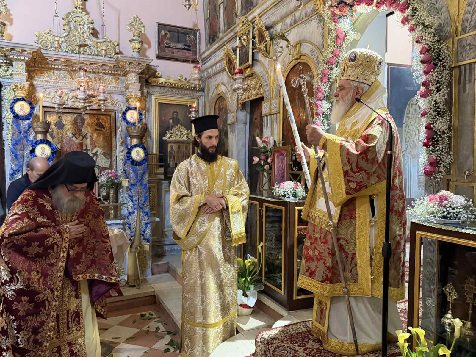 Ο κ. Θεόκλητος ευχήθηκε η Παναγία να χαρίζει υγεία, ομόνοια, πνεύμα ταπεινώσεως και μετανοίας, ώστε να ζούμε τη ζωή μας με χαμόγελο, με κουράγιο, με αισιοδοξία. Ζει Κύριος ο Θεός. Ο Χριστός νίκησε τον θάνατο και μας χάρισε τη ζωή και γι’ αυτό οφείλουμε με αυτό το ήθος να πορευόμαστε.