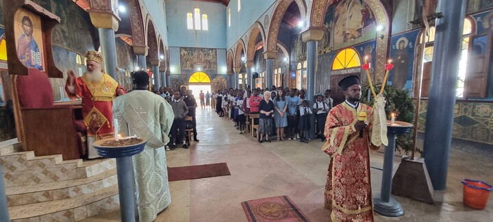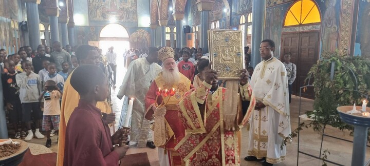 Ο Σεβασμιώτατος Μητροπολίτης Κινσάσας κ. Θεοδόσιος έφθασε την Παρασκευή το πρωί στην ενορία της Ζωοδόχου Πηγής Μπαζαγκούγκου, προκειμένου να συμμετάσχει στην Πανήγυρη.