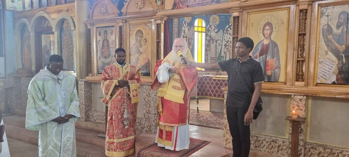 Ο Σεβασμιώτατος Μητροπολίτης Κινσάσας κ. Θεοδόσιος λειτούργησε και κήρυξε τον Θείο Λόγο. Ο εφημέριος του Ναού Πρωτοπρεσβύτερος Αγάπιος επιμελήθηκε τα της Πανηγυρεως. Στο τέλος ο Μητροπολίτης ευχήθηκε χρόνια πολλά σε όλους και ιδιαιτέρως στον π. Αγάπιο.