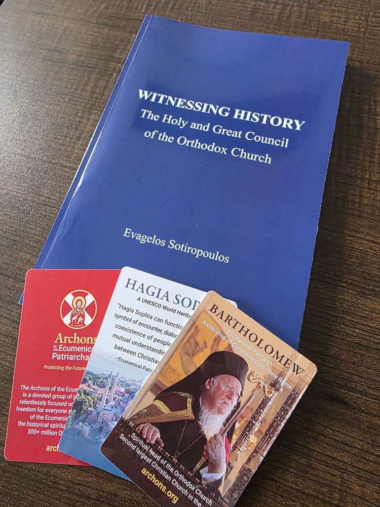 Ο Άρχων Σωτηρόπουλος προσέφερε σε κάθε Μέλος του Επαρχιακού Κοινοβουλίου ένα αντίτυπο του βιβλίου του «Μαρτυρώντας την Ιστορία: Η Αγία και Μεγάλη Σύνοδος της Ορθοδόξου Εκκλησίας», με αφορμή τη συμπλήρωση 10 ετών από τη Σύνοδο· επιπλέον, κάθε κοινοβουλευτικός έλαβε «Εκπαιδευτικές Κάρτες Αρχόντων», που δημιουργήθηκαν από το Αμερικανικό Τάγμα του Αγίου Ανδρέα, το οποίο ευχαριστούμε για τη συνεχιζόμενη συνεργασία.
