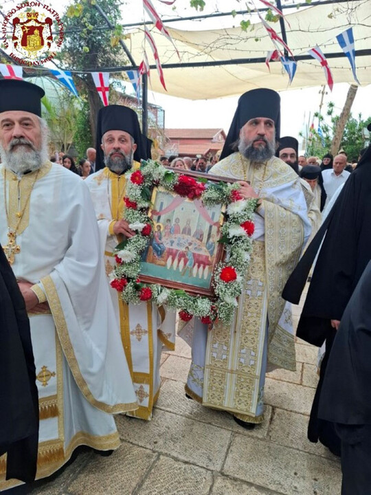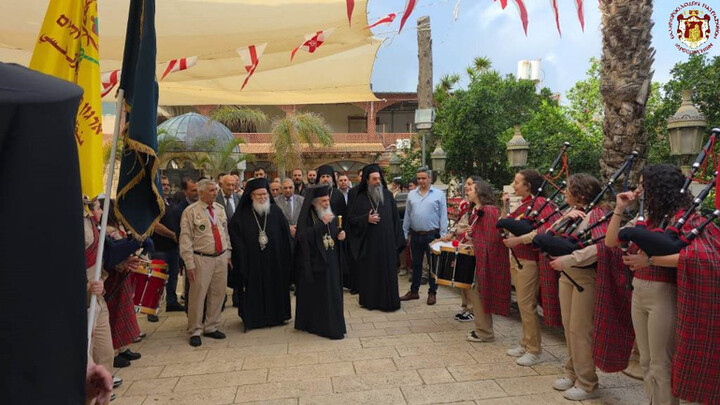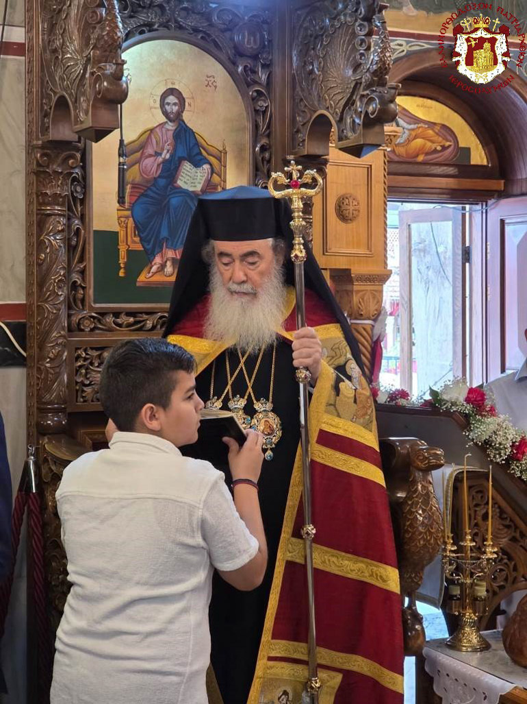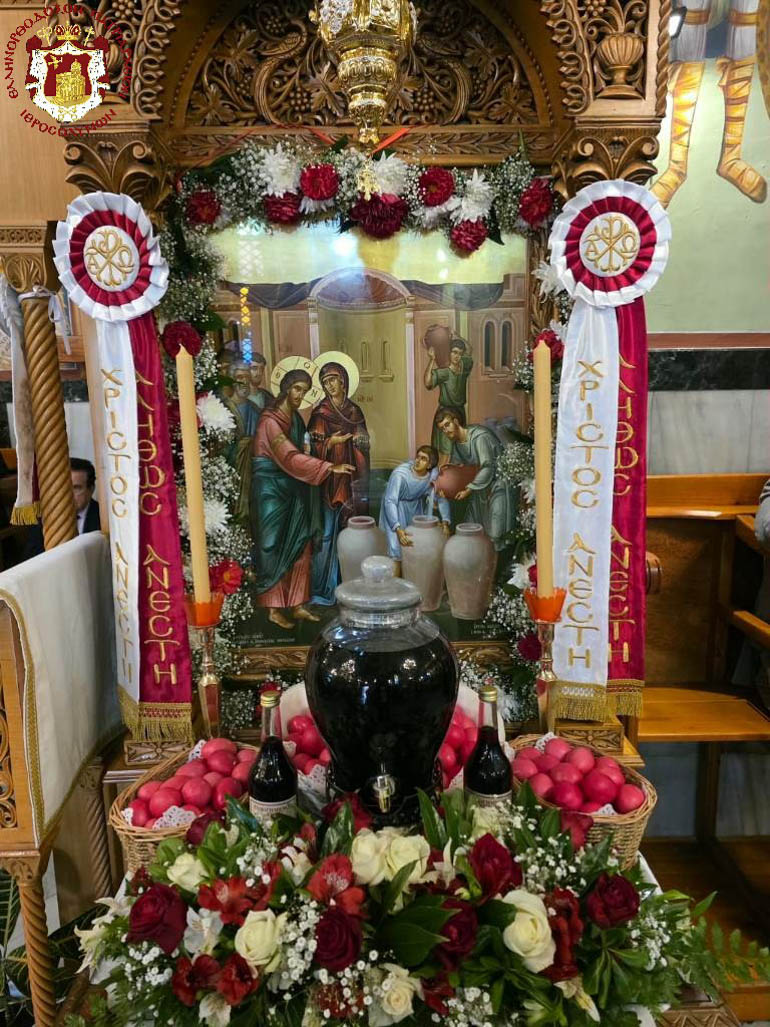 Τῆς διπλῆς ἑορτῆς ταύτης προεξῆρξεν τὴν πρωΐαν τῆς Κυριακῆς ἡ Α.Θ.Μ. ὁ Πατὴρ ἡμῶν καί Πατριάρχης Ἱεροσολύμων κ.κ. Θεόφιλος, διατελέσας ἡγούμενος ἐν Κανᾶ δι’ ὑποδοχῆς ὑπὸ τῶν Προσκόπων καὶ μελῶν τοῦ ποιμνίου διά θείας Λειτουργίας, συλλειτουργούντων Αὐτῷ τοῦ Σεβασμιωτάτου Μητροπολίτου Ναζαρέτ κ. Κυριακοῦ, τοῦ Σεβασμιωτάτου Ἀρχιεπισκόπου Κωνσταντίνης κ. Ἀριστάρχου τοῦ Σεβασμιωτάτου Μητροπολίτου Ἄκκρης κ. Μακαρίου, Ἀραβοφώνων Ἱερέων, οὐχ ἧττον τοῦ Ἡγουμένου τῆς Κανᾶ Ἀρχιμανδρίτου π. Λεοντίου.