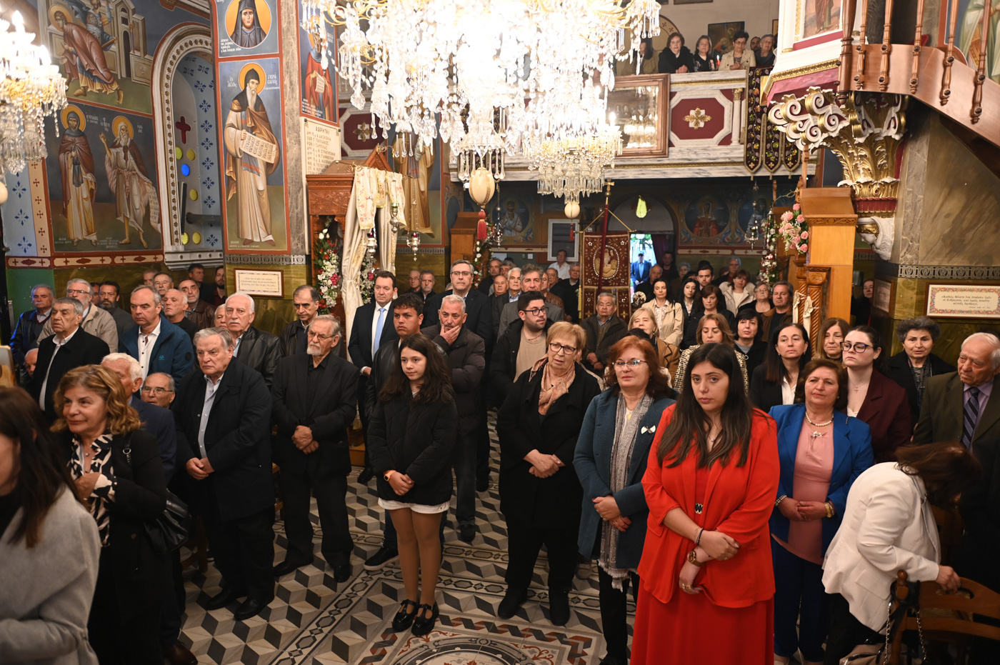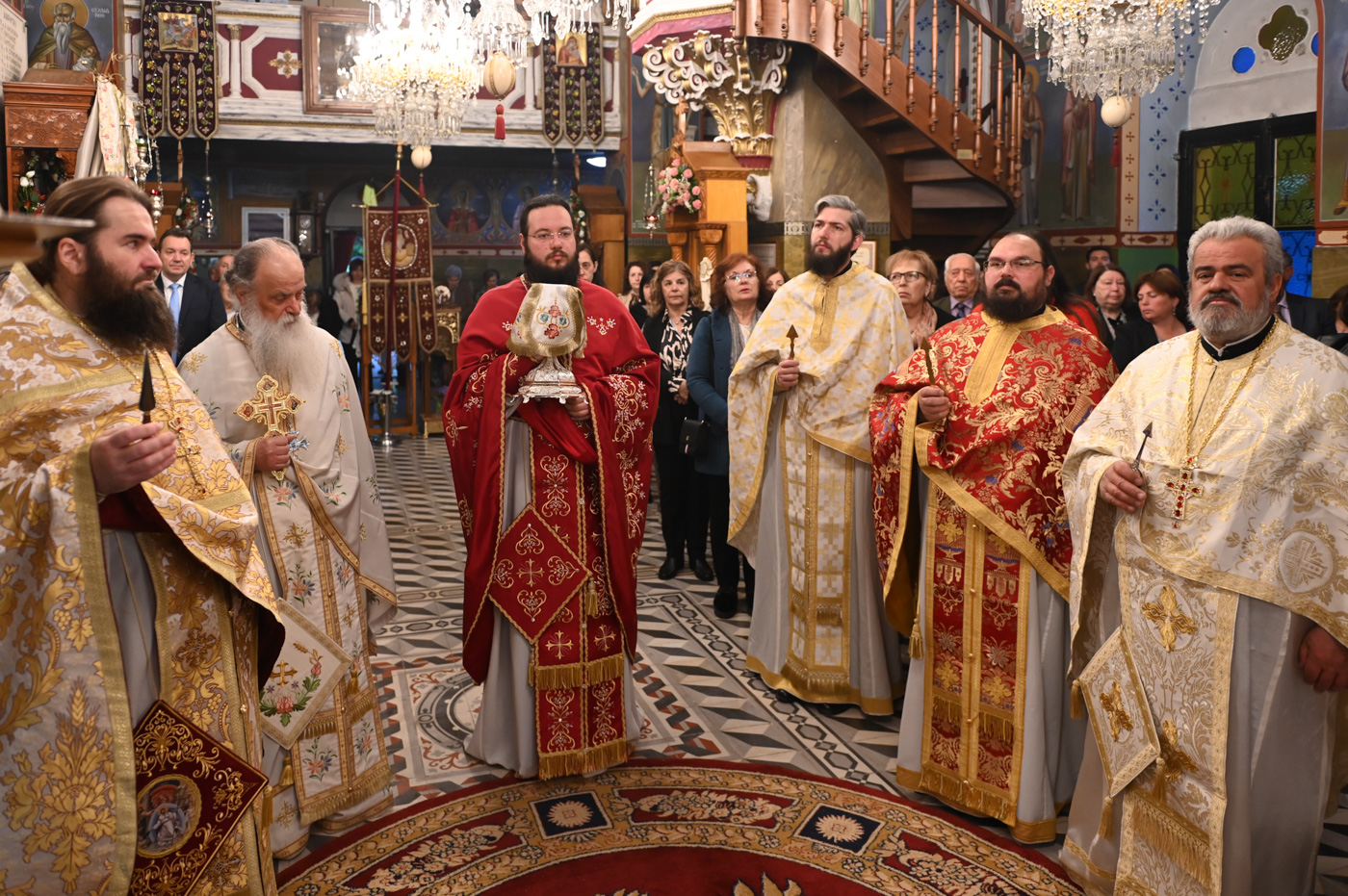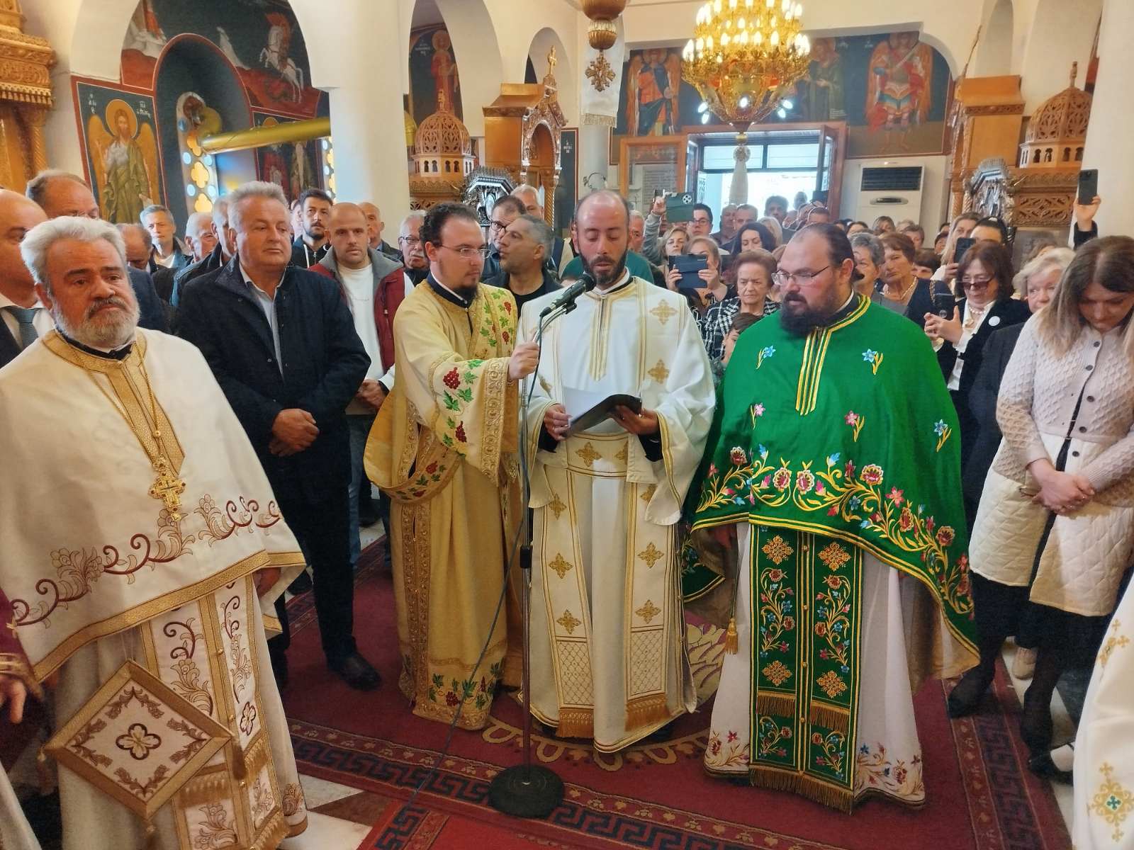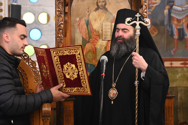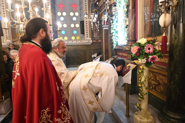 Πιστοί κατέκλυσαν τον πανηγυρίζοντα Ιερό Ναό του Αγίου Γεωργίου, με σκοπό να συμμετάσχουν στην Θεία Λειτουργία, να προσκυνήσουν τμήμα Ιερού Λειψάνου του εορταζομένου Αγίου και να ευχηθούν τα δέοντα στο νέο κληρικό της Μητροπόλεως.