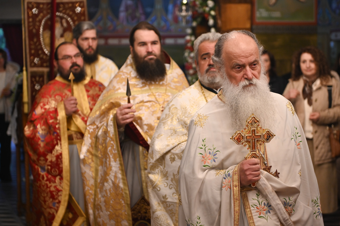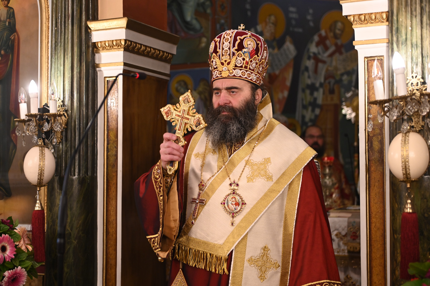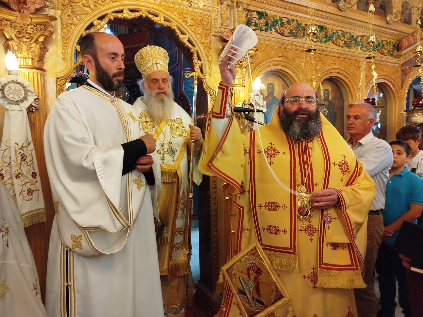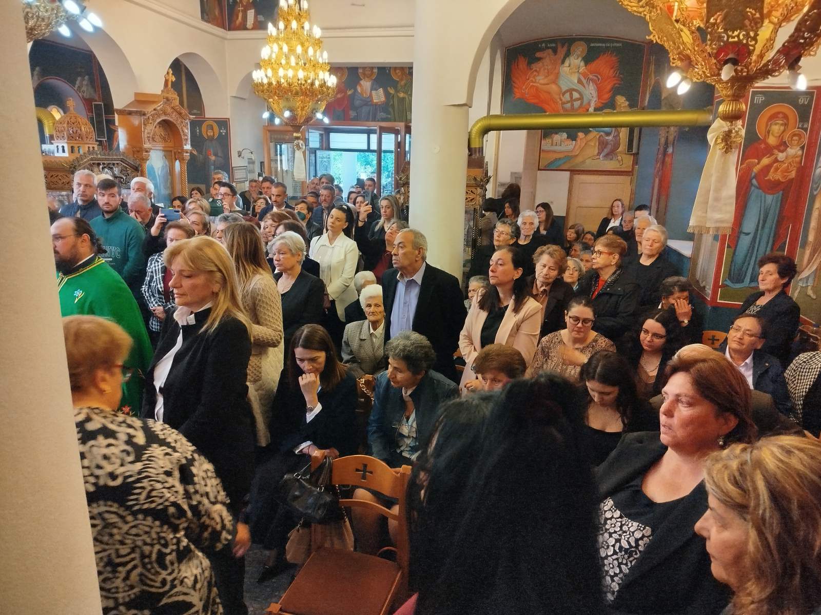 Πιστοί κατέκλυσαν τον πανηγυρίζοντα Ιερό Ναό του Αγίου Γεωργίου, με σκοπό να συμμετάσχουν στην Θεία Λειτουργία, να προσκυνήσουν τμήμα Ιερού Λειψάνου του εορταζομένου Αγίου και να ευχηθούν τα δέοντα στο νέο κληρικό της Μητροπόλεως.