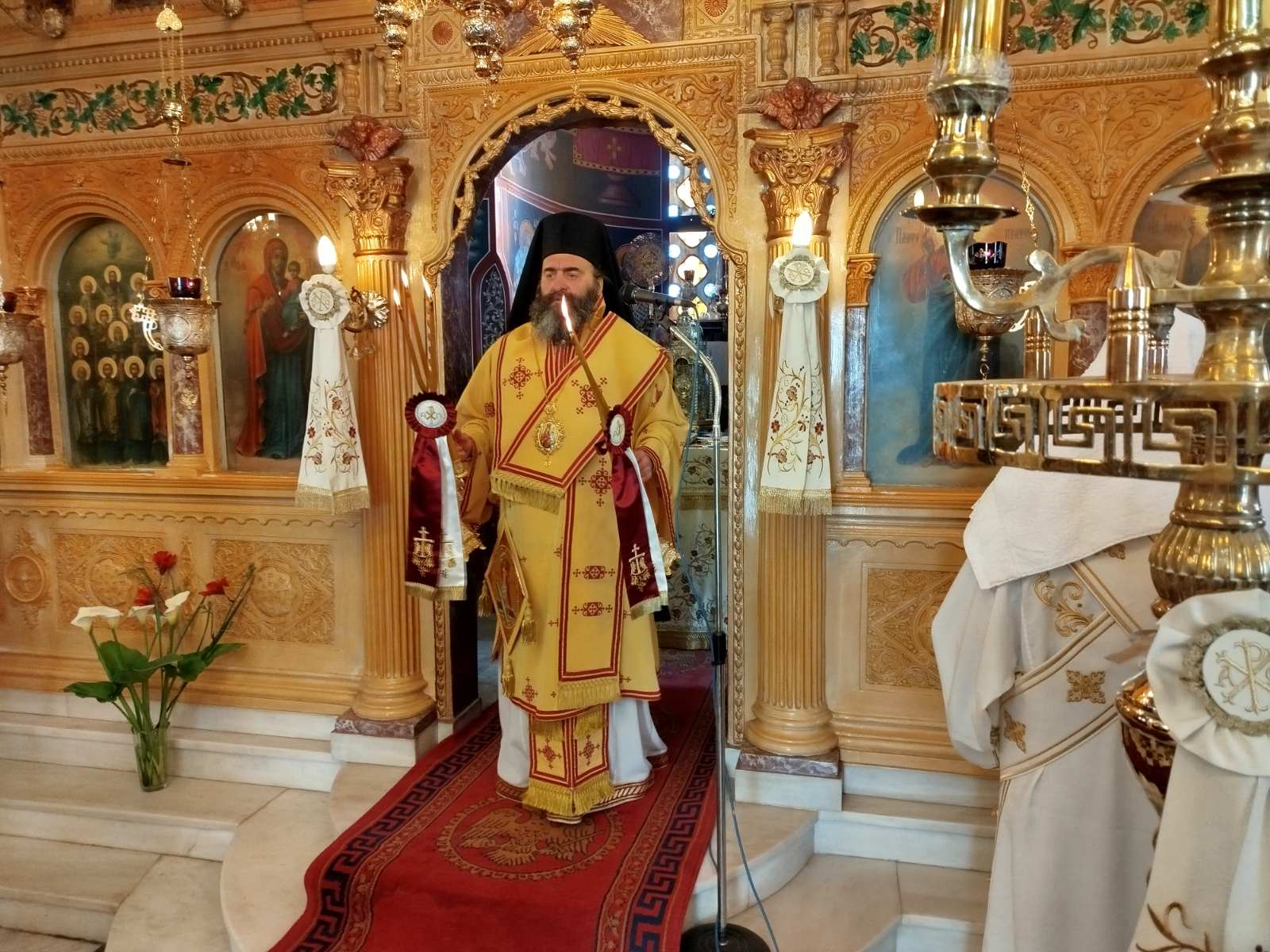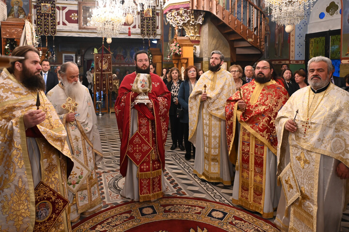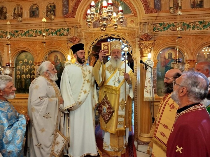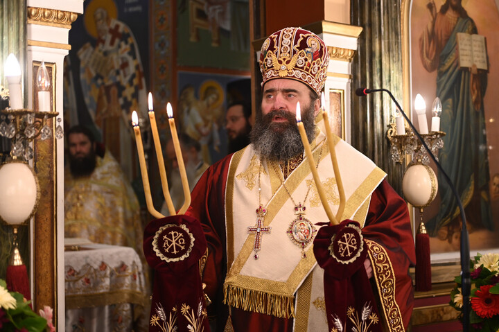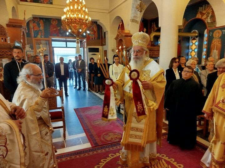 Τον Όρθρο και την Πανηγυρική Θεία Λειτουργία τέλεσε ο Θεοφιλέστατος Επίσκοπος Τεγέας κ. Θεόκλητος, πλαισιούμενος από πλειάδα Ιερέων.