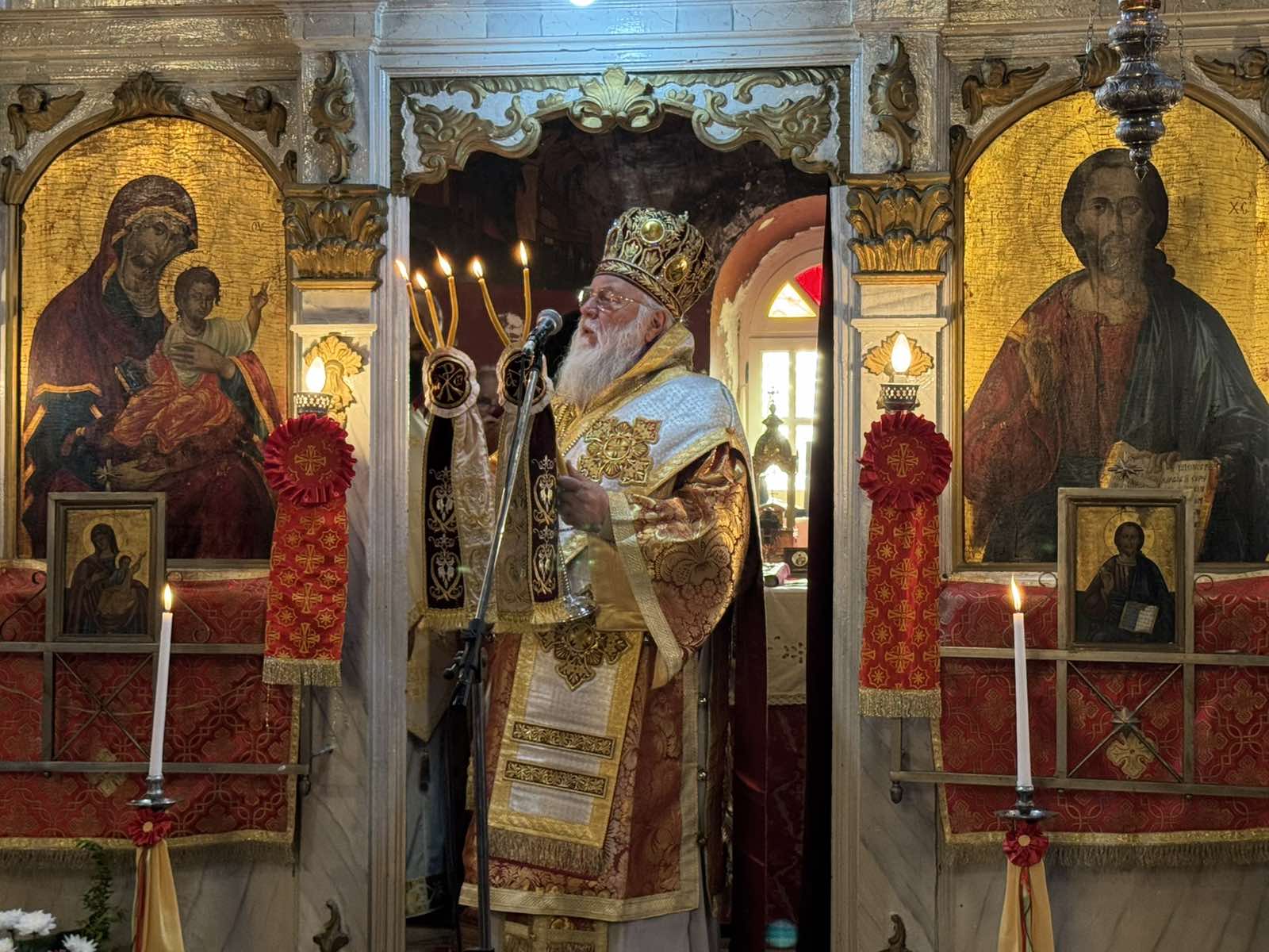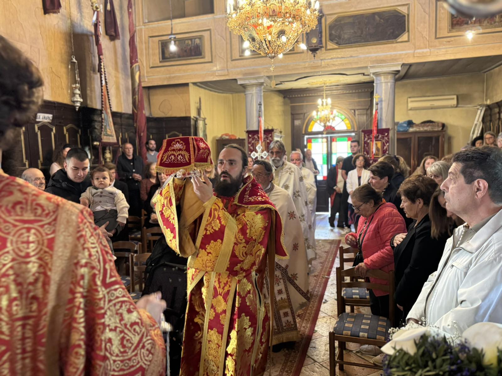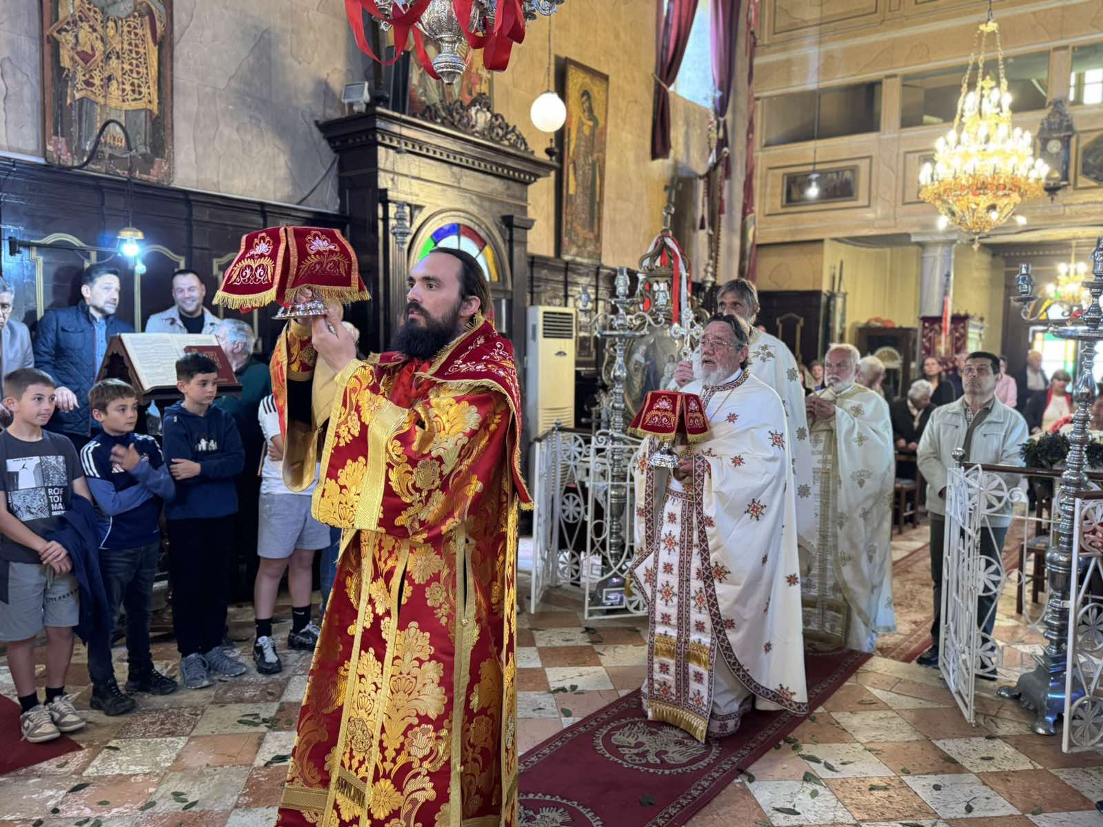 Ο Σεβασμιώτατος, κατά τη Θεία Λειτουργία, πλαισιώθηκε από τον Αρχιερατικό Επίτροπο Βορείου Κερκύρας, Πρωτοπρεσβύτερο Σπυρίδωνα Προβατά, Ιερείς των γειτονικών περιοχών καθώς και τους Διακόνους του. Αξίζει, δε, να σημειωθεί ότι ο Ιερός Ναός κατακλύστηκε από την παρουσία παιδιών των σχολείων της περιοχής, τα οποία συμμετείχαν με ευλάβεια στην πανηγυρική Θεία Λειτουργία.