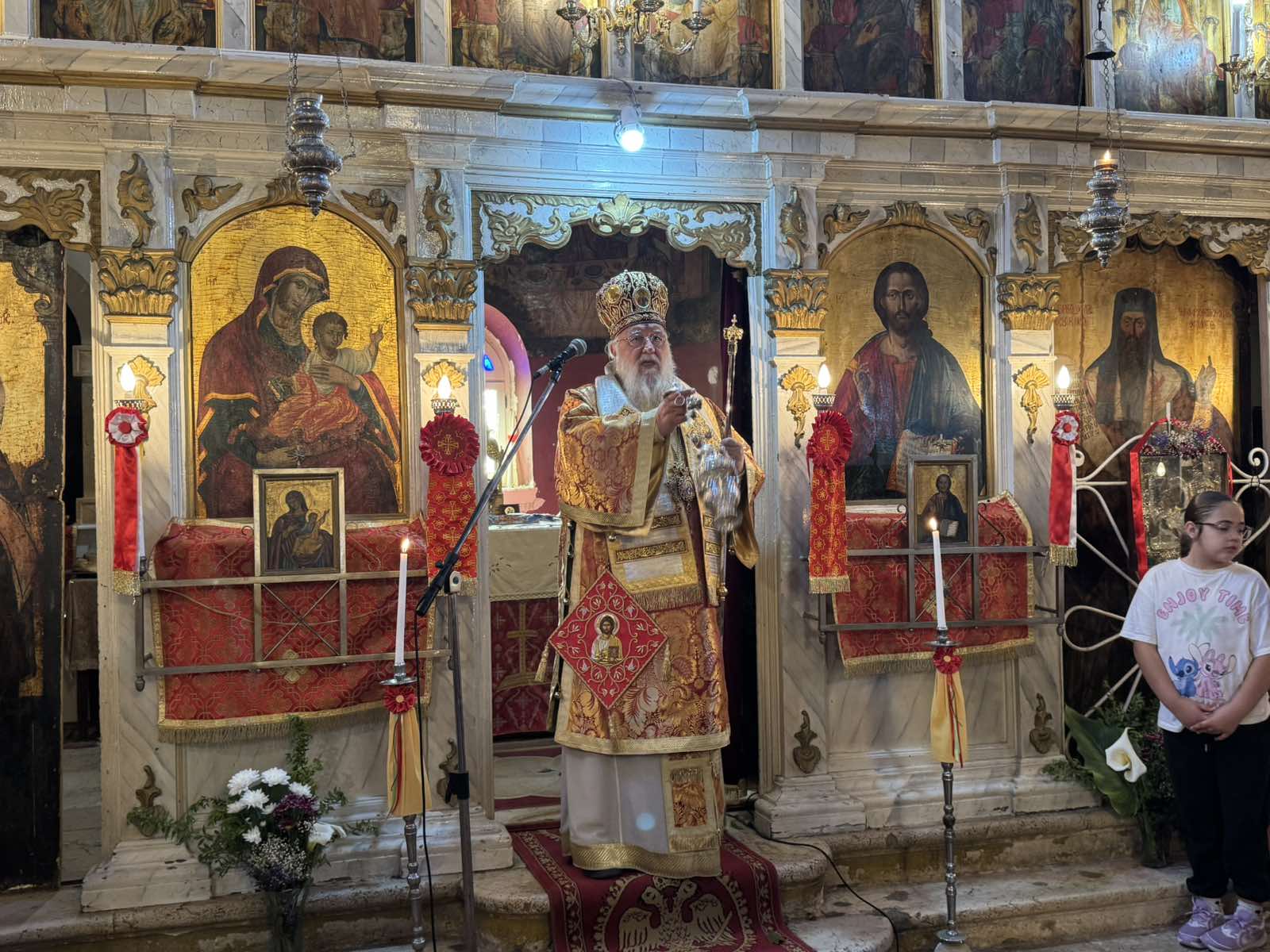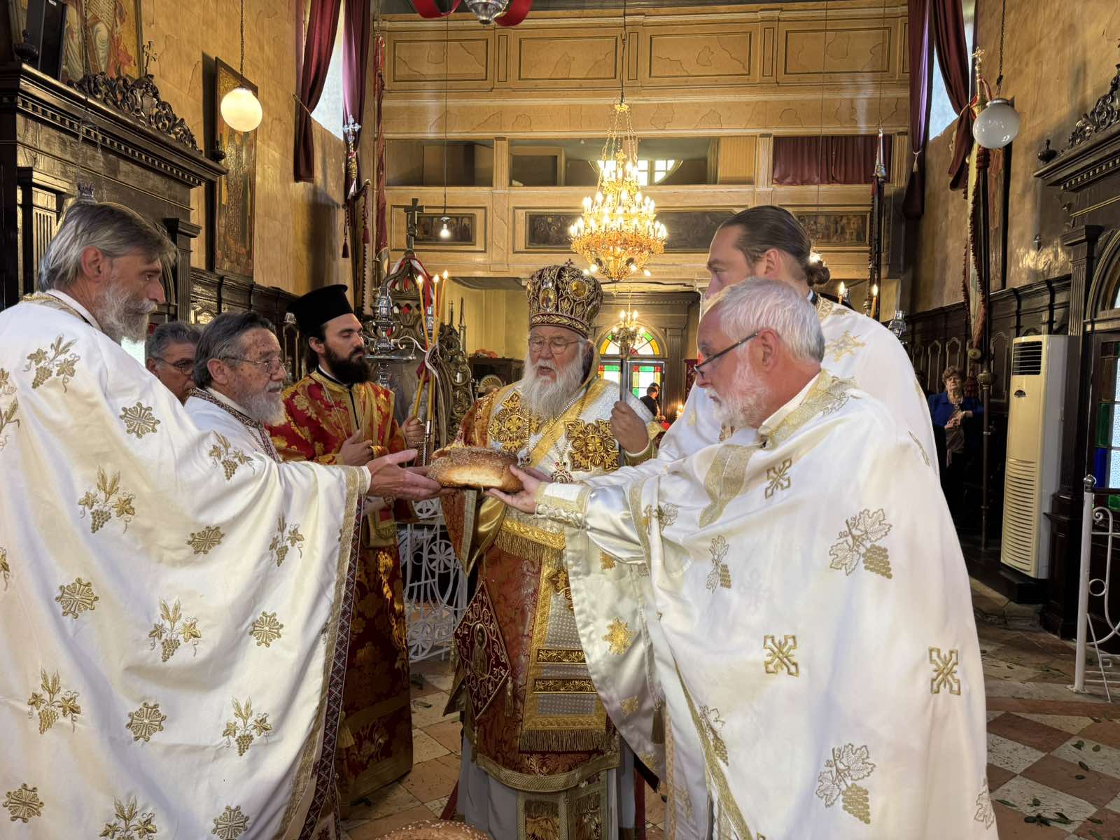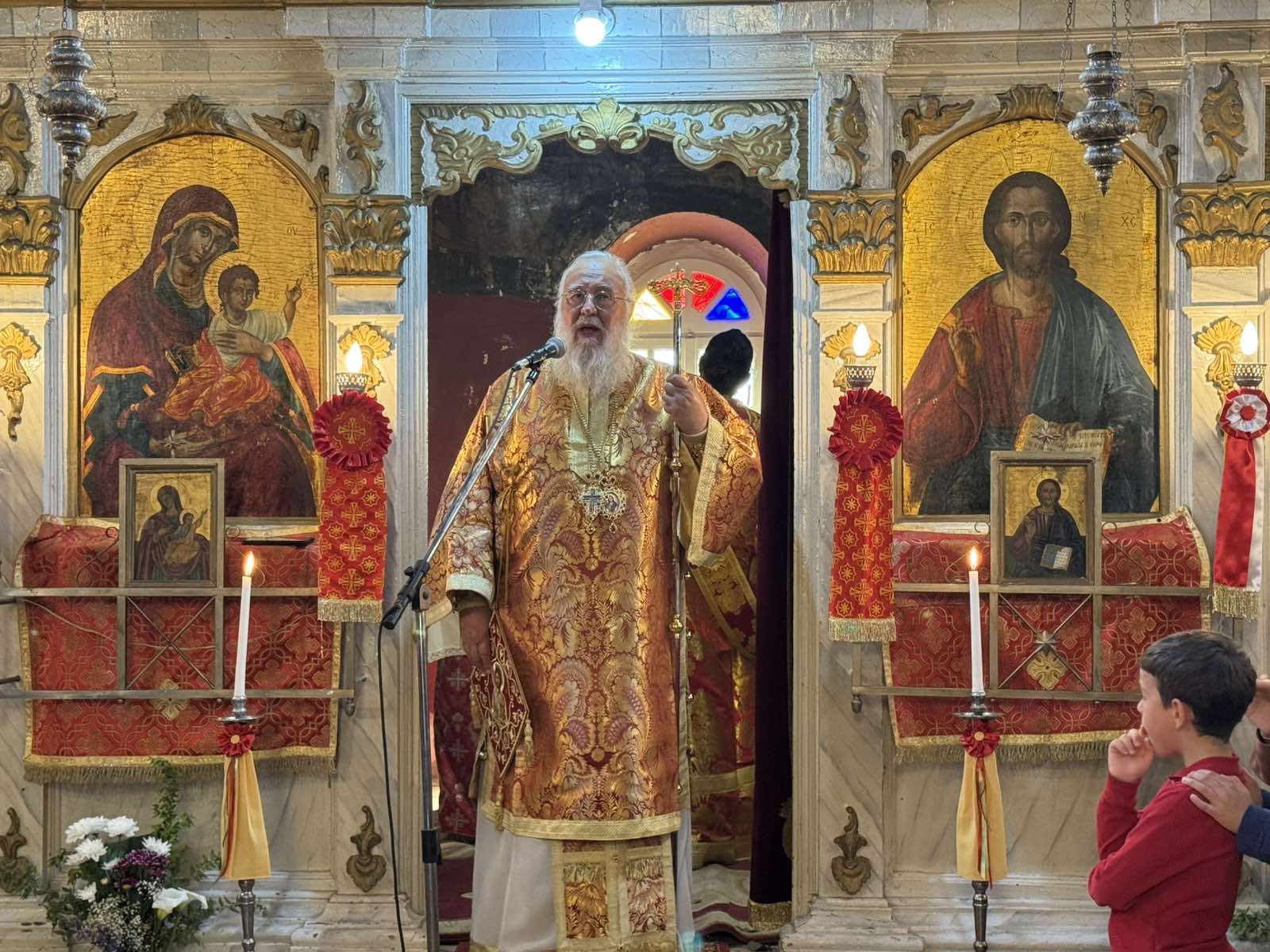 Ο Σεβασμιώτατος, κατά τη Θεία Λειτουργία, πλαισιώθηκε από τον Αρχιερατικό Επίτροπο Βορείου Κερκύρας, Πρωτοπρεσβύτερο Σπυρίδωνα Προβατά, Ιερείς των γειτονικών περιοχών καθώς και τους Διακόνους του. Αξίζει, δε, να σημειωθεί ότι ο Ιερός Ναός κατακλύστηκε από την παρουσία παιδιών των σχολείων της περιοχής, τα οποία συμμετείχαν με ευλάβεια στην πανηγυρική Θεία Λειτουργία.