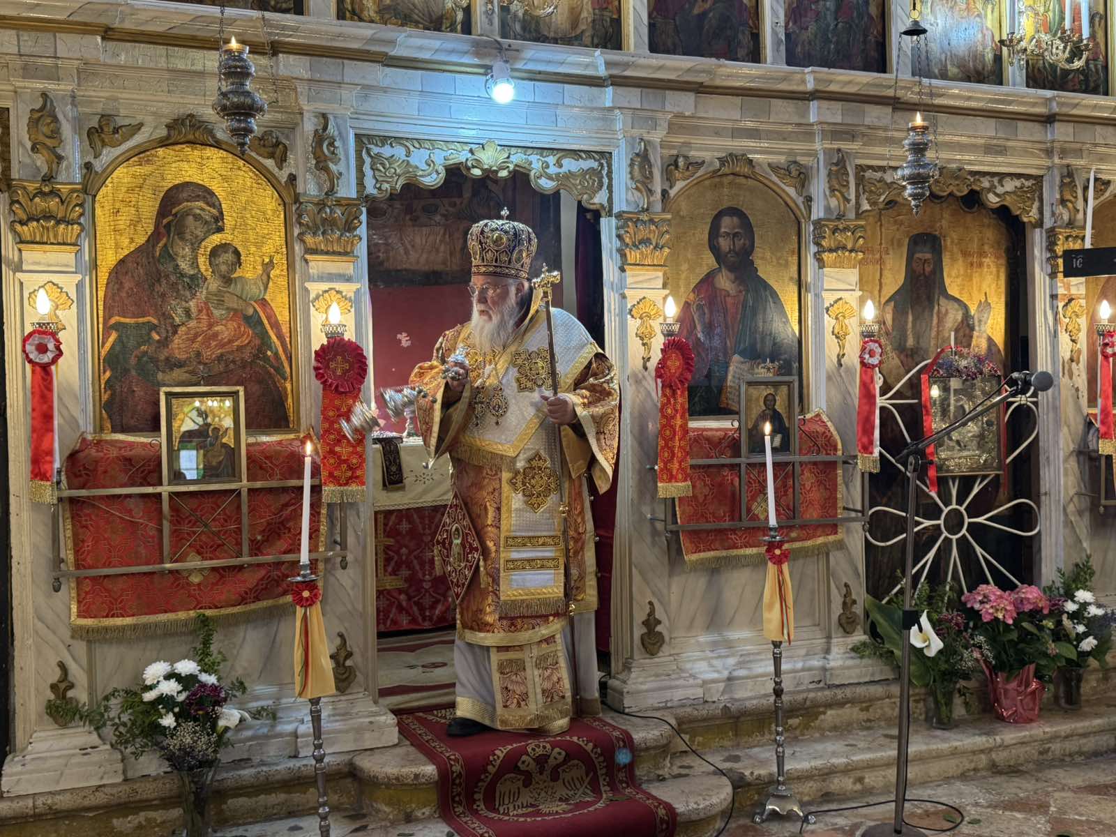 Επιπλέον, ο Σεβασμιώτατος υπογράμμισε ότι οι Άγιοι της Εκκλησίας δεν λησμονούνται, διότι ζουν μέσα στη χάρη και το φως της Αναστάσεως. Αντιθέτως, τα μεγέθη του κόσμου, η δύναμη, ο πλούτος και η δόξα, αποδεικνύονται πρόσκαιρα και φθαρτά, καθώς ο άνθρωπος εύκολα λησμονείται με το πέρασμα του χρόνου. Ο Άγιος Γεώργιος, όμως, όπως και όλοι οι Άγιοι, παραμένει ζωντανός «εις τους αιώνας», διότι η ζωή του ήταν ενωμένη με το Χριστό. Έτσι, κάλεσε τους πιστούς να αναζητούν το αιώνιο και όχι το πρόσκαιρο, επενδύοντας στη σχέση τους με τον Θεό.