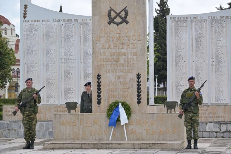 Τη δοξολογία στο χώρο προ του Ηρώου τέλεσε ο Σεβασμιώτατος Μητροπολίτης Λαρίσης και Τυρνάβου κ. Ιερώνυμος.