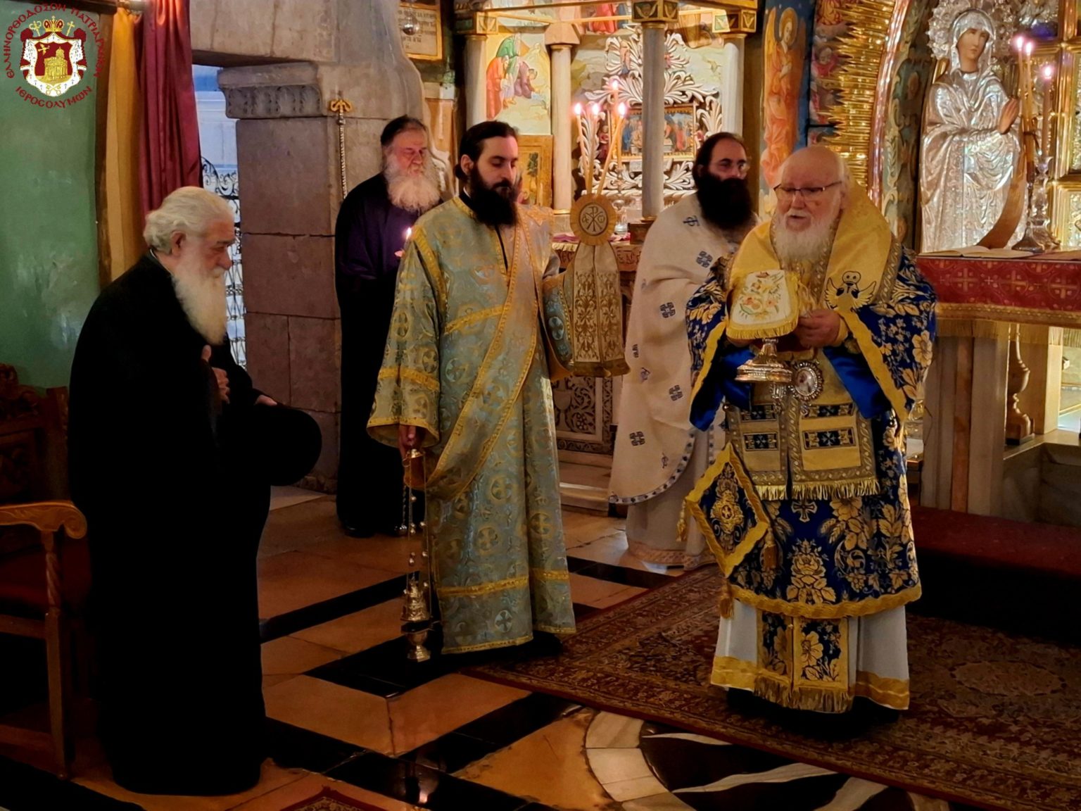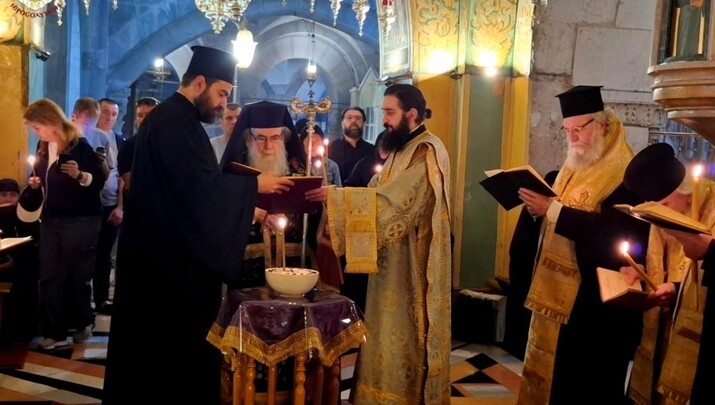 Του μνημοσύνου προεξήρχε o Πατριάρχης Ιεροσολύμων κ.κ. Θεόφιλος, συλλειτουργούντων Αγιοταφιτών Αρχιερέων, ιερομονάχων και ιεροδιακόνων, καθώς και προσευχομένων μοναχών, μοναζουσών και μελών της Εκκλησίας των Ιεροσολύμων.