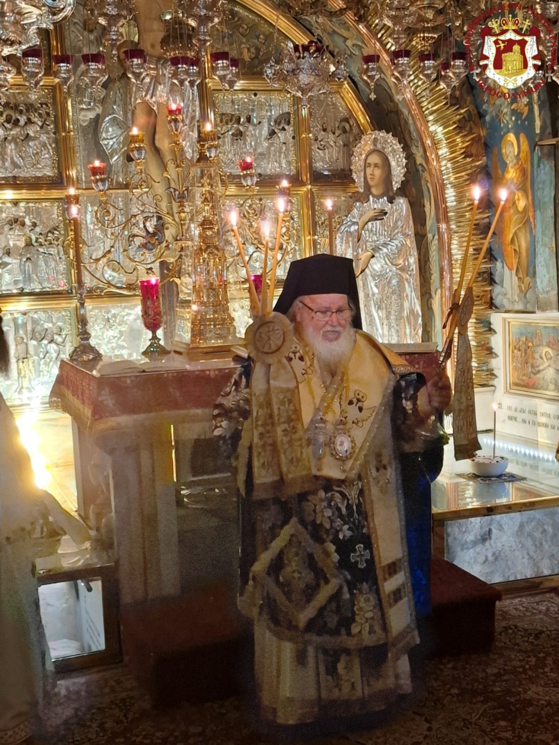 Θεία Λειτουργία τελέστηκε το πρωί της Παρασκευής, 24 Απριλίου 2026, στον Φρικτό Γολγοθά, της οποίας προεξήρχε ο Σεβασμιώτατος Μητροπολίτης Ναζαρέτ κ. Κυριακός. Μετά τη Θεία Λειτουργία τελέστηκε το τεσσαρακονθήμερο μνημόσυνο του μακαριστού Αγιοταφίτη Αρχιμανδρίτη Τιμοθέου Νικολάου, ο οποίος είχε διατελέσει Ηγούμενος της Ιεράς Μονής των Δώδεκα Αποστόλων στην Τιβεριάδα.