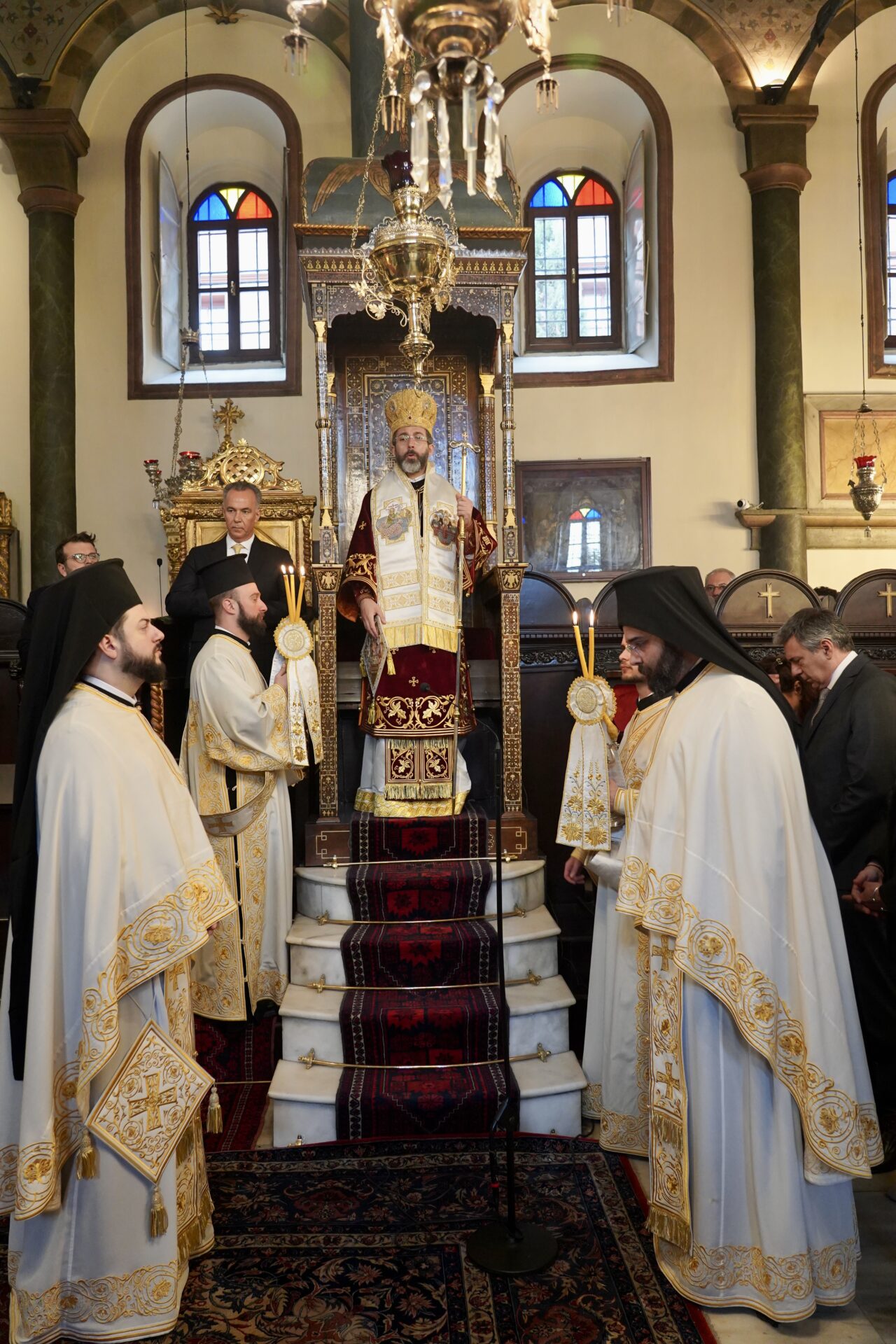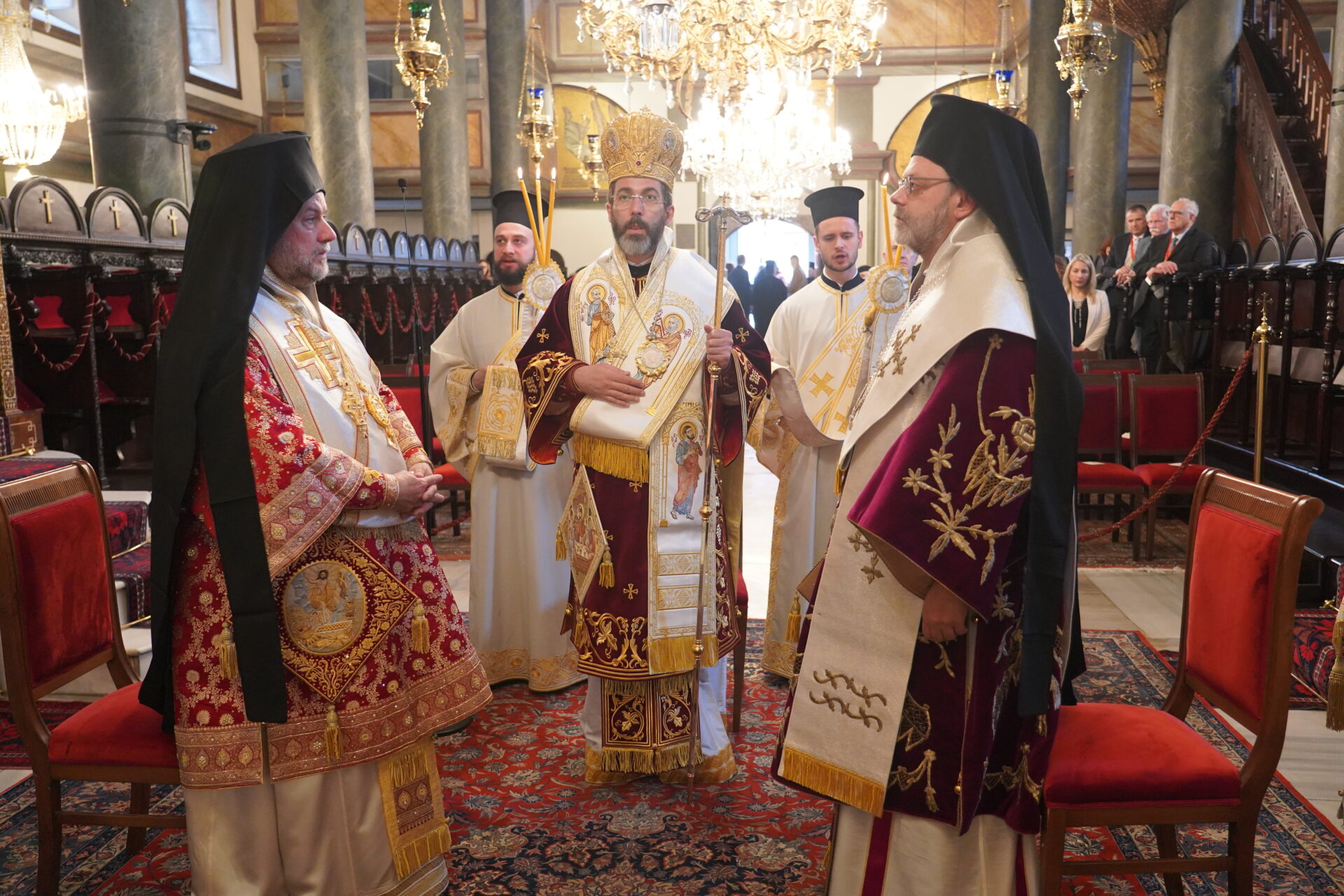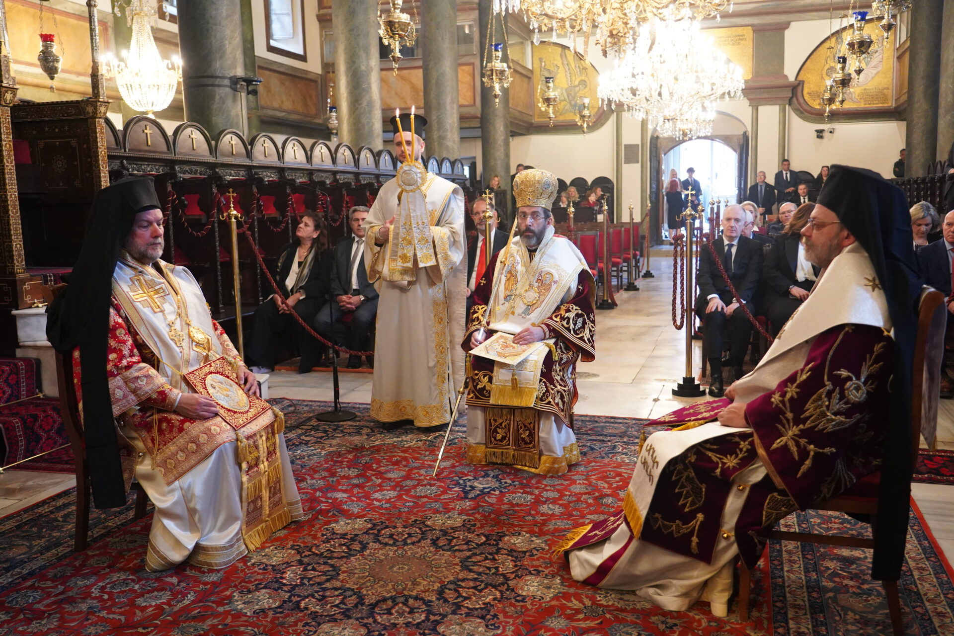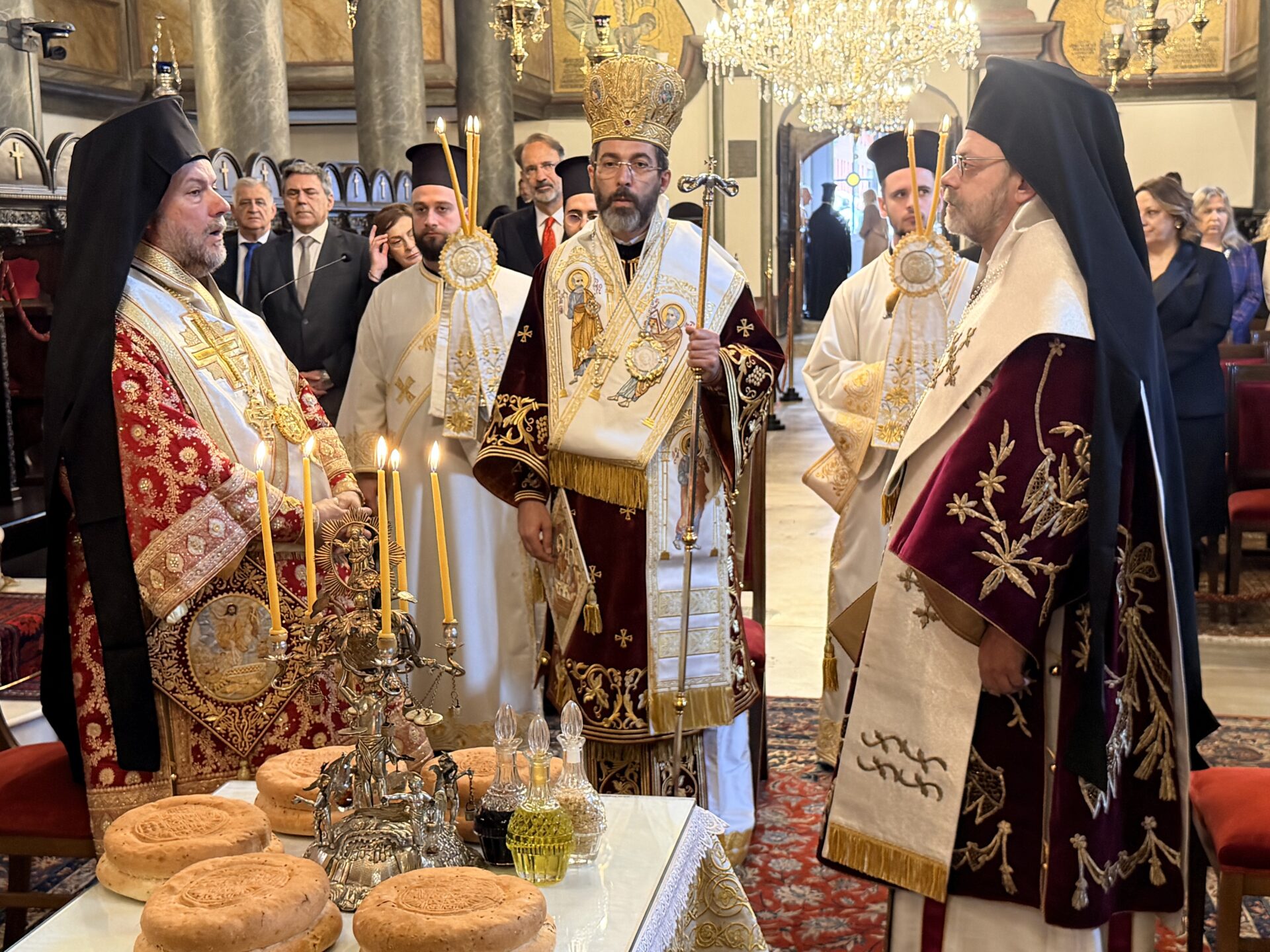 Εκκλησιάστηκαν οι Αρχιερείς Σεβ. Γέρων Χαλκηδόνος κ. Εμμανουήλ, Γέρων Πριγκηποννήσων κ .Δημήτριος, Φιλαδελφείας κ. Μελίτων, Μυριοφύτου και Περιστάσεως κ. Ειρηναίος, Μύρων κ. Χρυσόστομος, Καλλιουπόλεως και Μαδύτου κ. Στέφανος, Κυδωνιών κ. Αθηναγόρας, Σμύρνης κ. Βαρθολομαίος και Αγκύρας κ. Γρηγόριος και Θεοφιλ. Αλικαρνασσού κ. Αδριανός και Τράλλεων κ. Βενιαμίν, κληρικοί, ο Εξοχ. Πρέσβυς κ. Κωνσταντίνος Κούτρας, Γενικός Πρόξενος της Ελλάδας στην Πόλη, Άρχοντες Οφφικιάλιοι με επί κεφαλής τον Εντιμολ. Άρχοντα Διδάσκαλο του Γένους κ. Κωνσταντίνο Δεληκωσταντή, Διευθυντή του Α’ Πατριαρχικού Γραφείου, εκ προσώπου του Δ.Σ. της Αδελφότητας Οφφικιαλίων “Παναγία η Παμμακάριστος”, κοινοτικοί παράγοντες, και πλήθος πιστών από την Πόλη και προσκυνητών από το εξωτερικό.