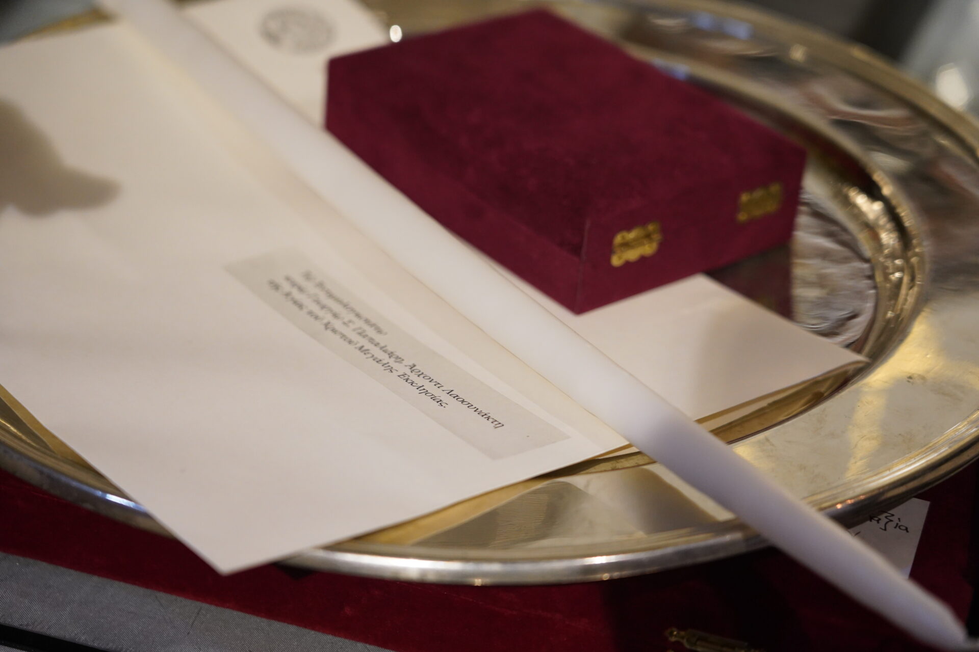 Μετά την Απόλυση, ο Παναγιώτατος απένειμε το Οφφίκιο του Άρχοντος Λαοσυνάκτου της Αγίας του Χριστού Μεγάλης Εκκλησίας στον Εντιμολ. κ. Γεώργιο Παπαλιάρη, δυναμικό στέλεχος της Ομογενείας και Πρόεδρο της Μεγαλωνύμου Κοινότητος Σταυροδρομίου καθώς και του Συνδέσμου Υποστήριξης Ρωμαίικων Κοινοτικών Ιδρυμάτων (ΣΥΡΚΙ).