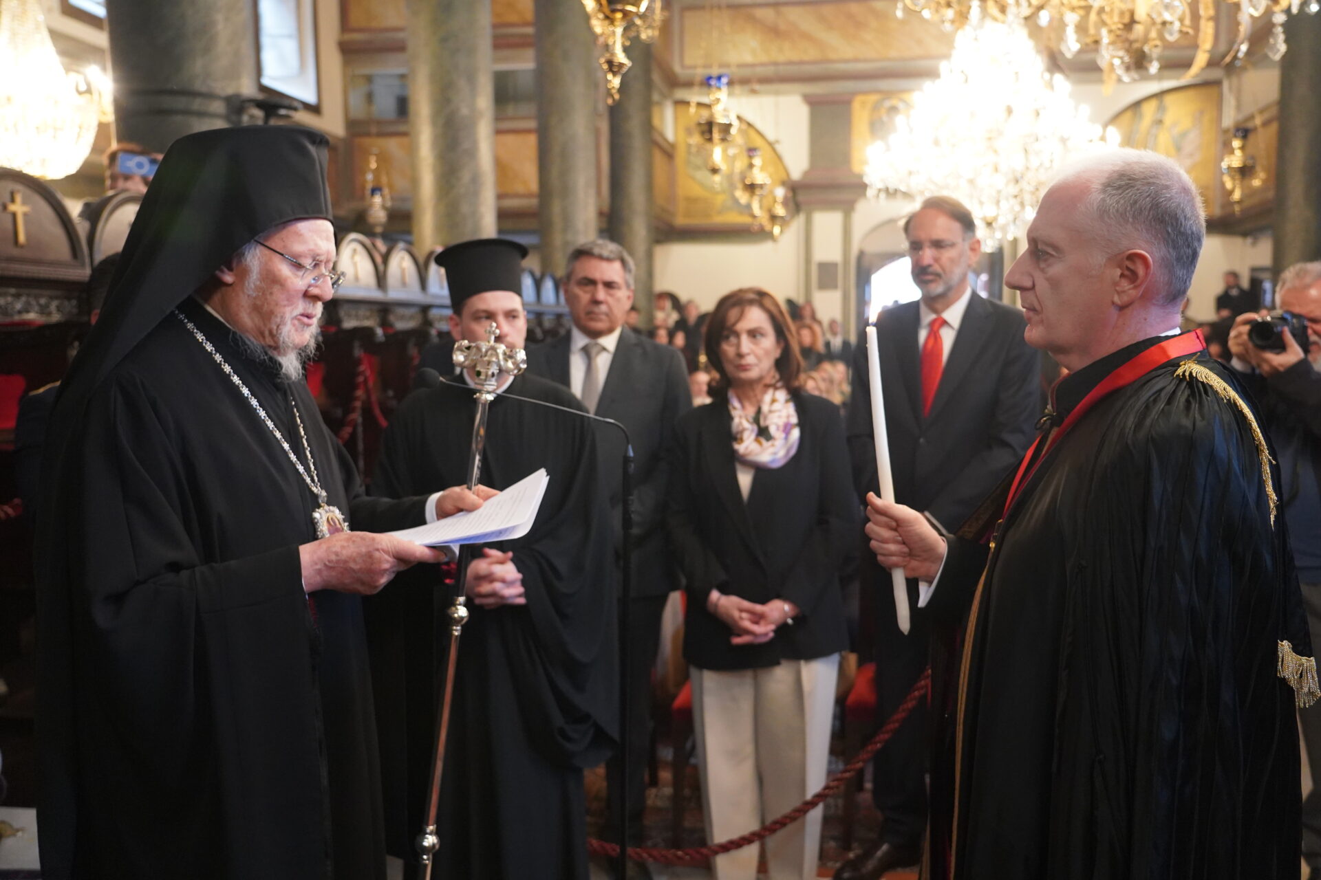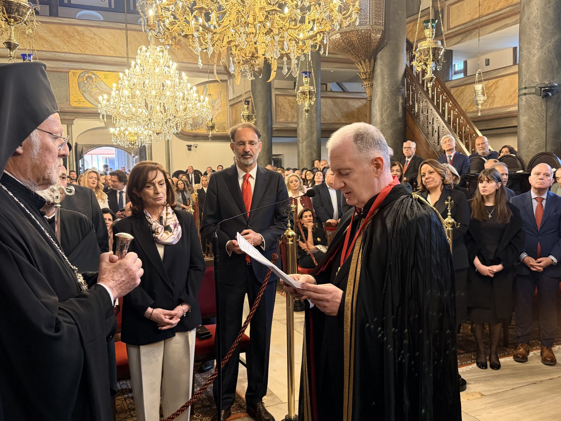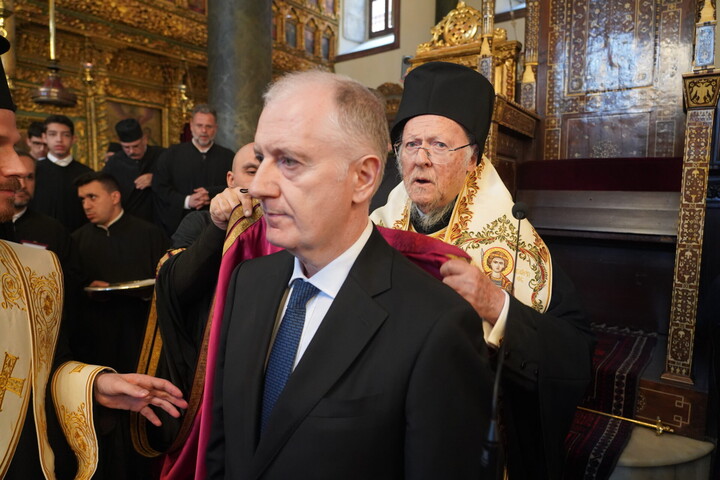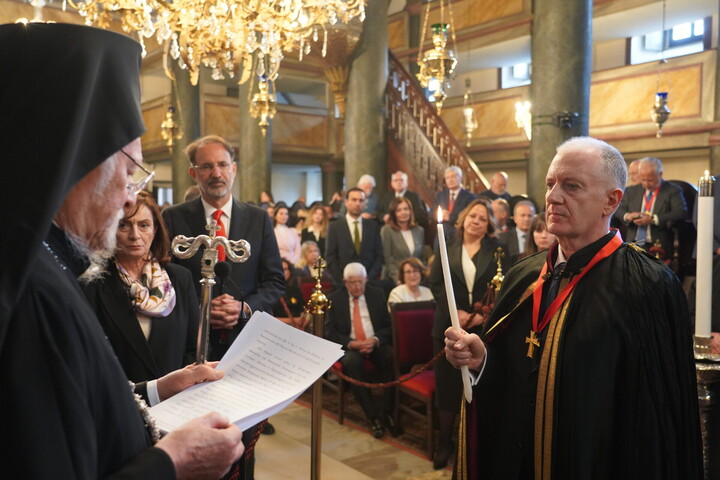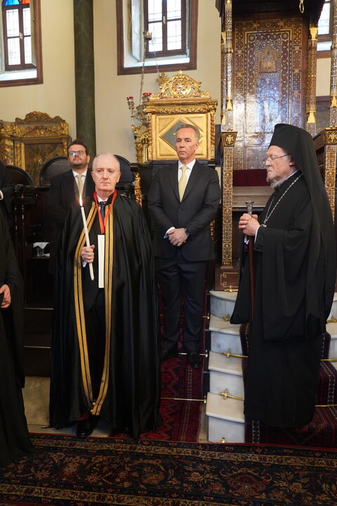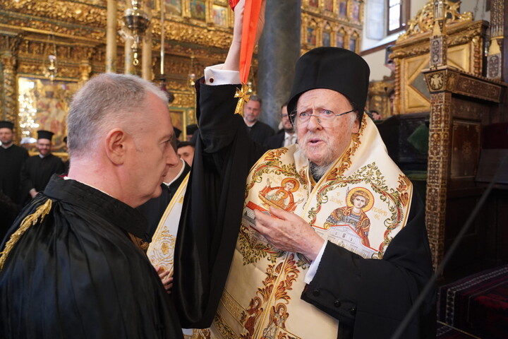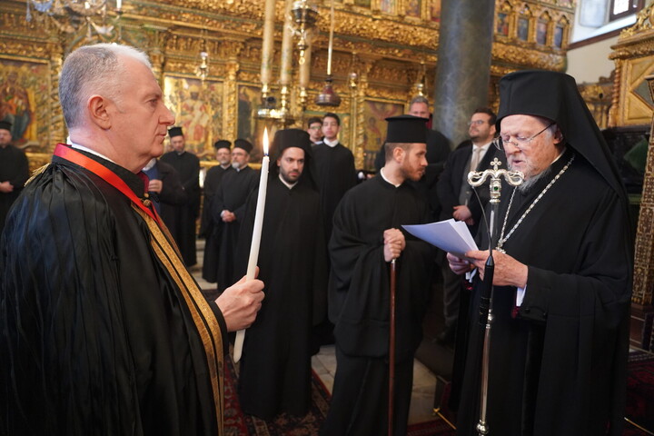 Ο Παναγιώτατος είπε ότι από σήμερα ο νέος Άρχων θα αποτελεί μέλος της Αδελφότητος Οφφικιαλίων του Οικουμενικού Πατριαρχείου “Παναγία η Παμμακάριστος”, και ολοκληρώνοντας την ομιλία του σημείωσε εμφατικά: