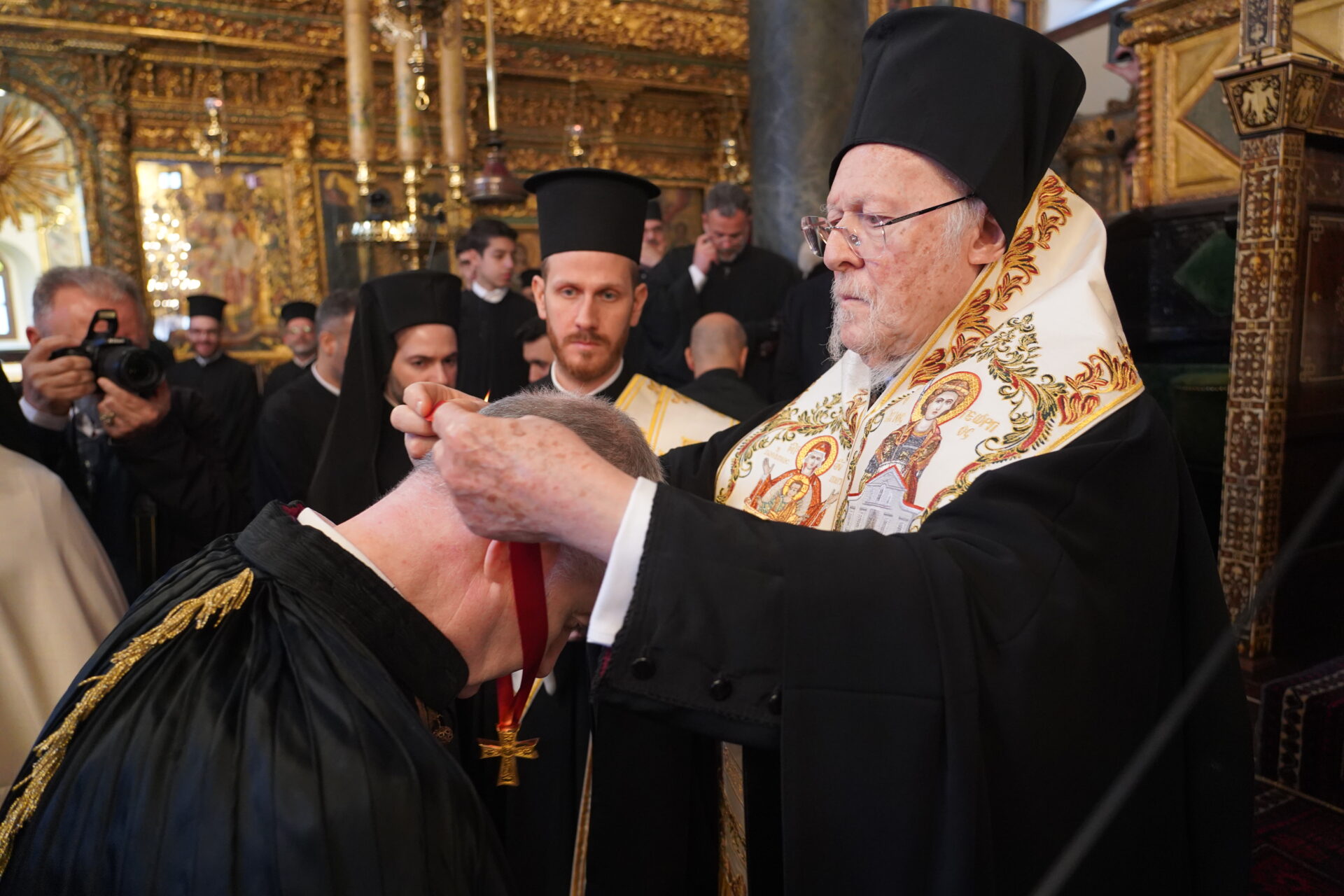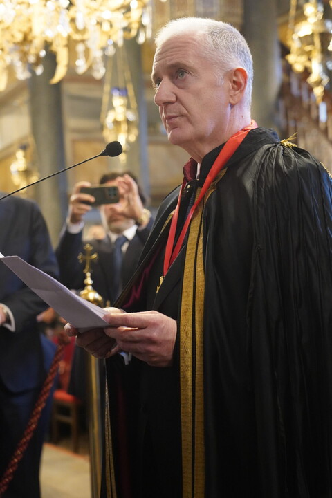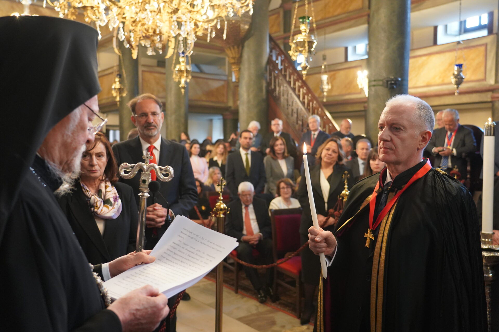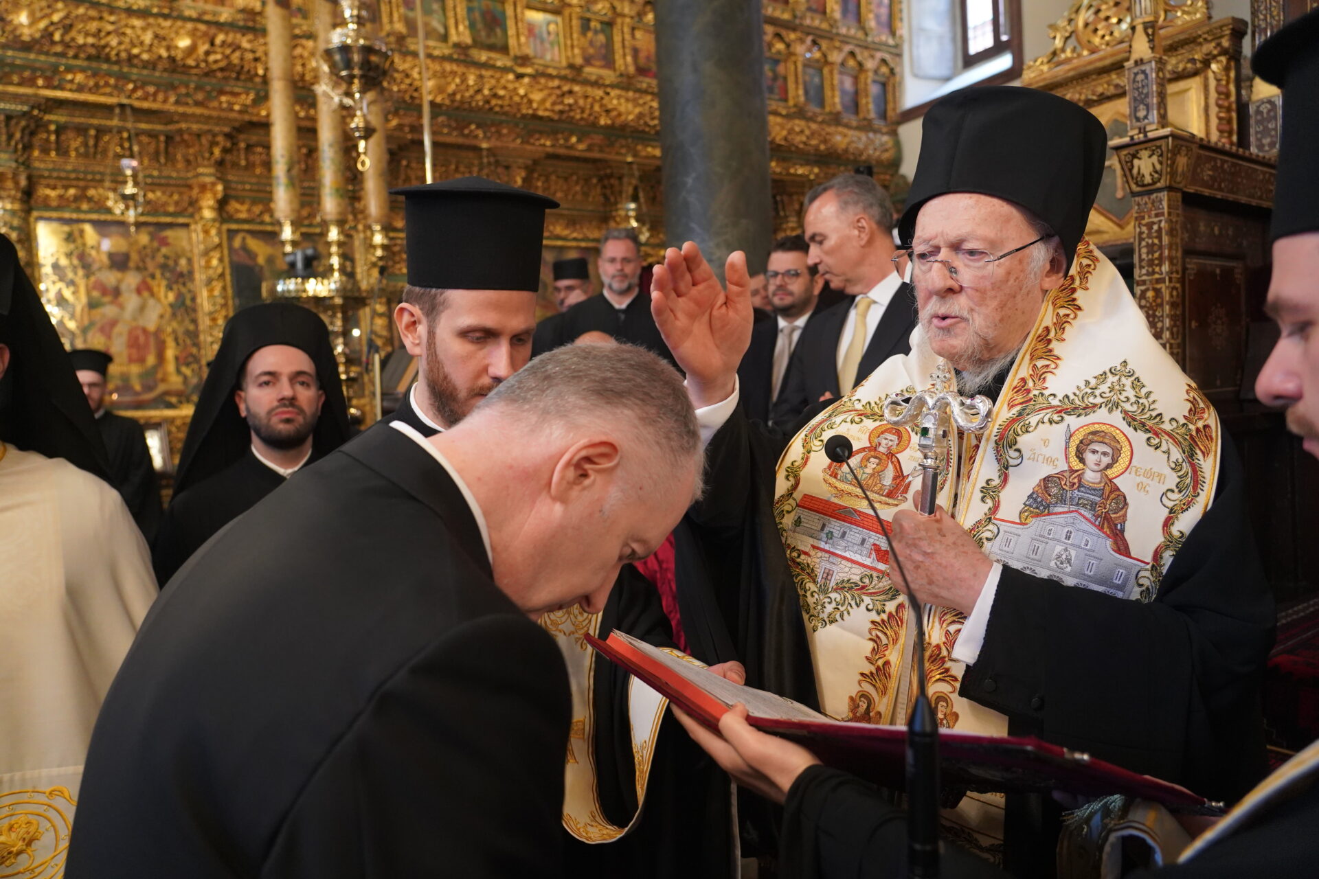 Ο Παναγιώτατος είπε ότι από σήμερα ο νέος Άρχων θα αποτελεί μέλος της Αδελφότητος Οφφικιαλίων του Οικουμενικού Πατριαρχείου “Παναγία η Παμμακάριστος”, και ολοκληρώνοντας την ομιλία του σημείωσε εμφατικά: