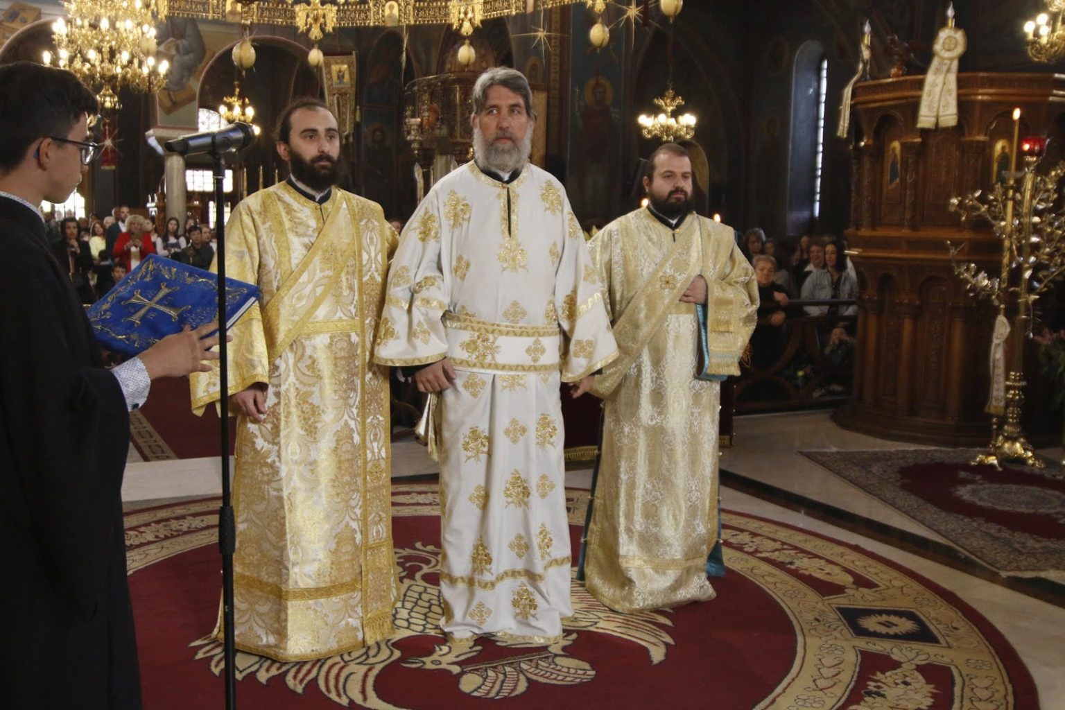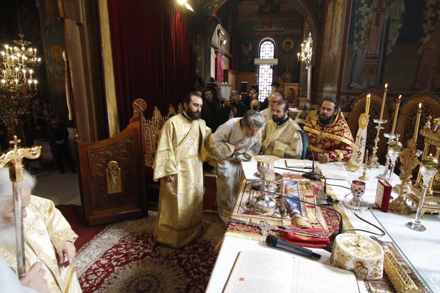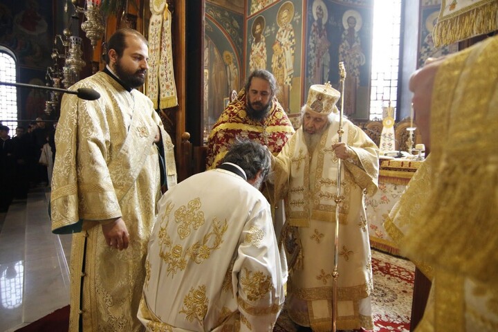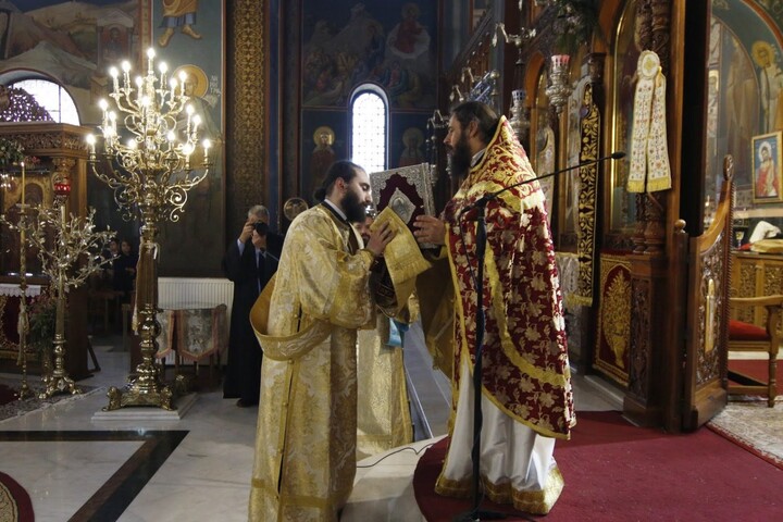 Με τον Σεβασμιώτατο συλλειτούργησαν ο Πρωτοσύγκελλος της Ιεράς Μητροπόλεως, ο Ιεροκήρυξ της Ιεράς Μητροπόλεως, Αρχιμανδρίτης Παντελεήμων Καραλάζος, ο Γενικός Αρχιερατικός Επίτροπος, Πρωτοπρεσβύτερος Γεώργιος Ζουμής, ο Προϊστάμενος του Ιερού Καθεδρικού Ναού, Αρχιμανδρίτης Χριστόδουλος Καραγιάννης, ο Αρχιδιάκονος της Ιεράς Μητροπόλεως, Θεόφιλος Γαργάλας, και ο Διάκονος Ιωάννης Γκερτσάκης. Ο π. Ευθύμιος θα διακονεί στον Ιερό Καθεδρικό Ναό της Αγίας Σκέπης.