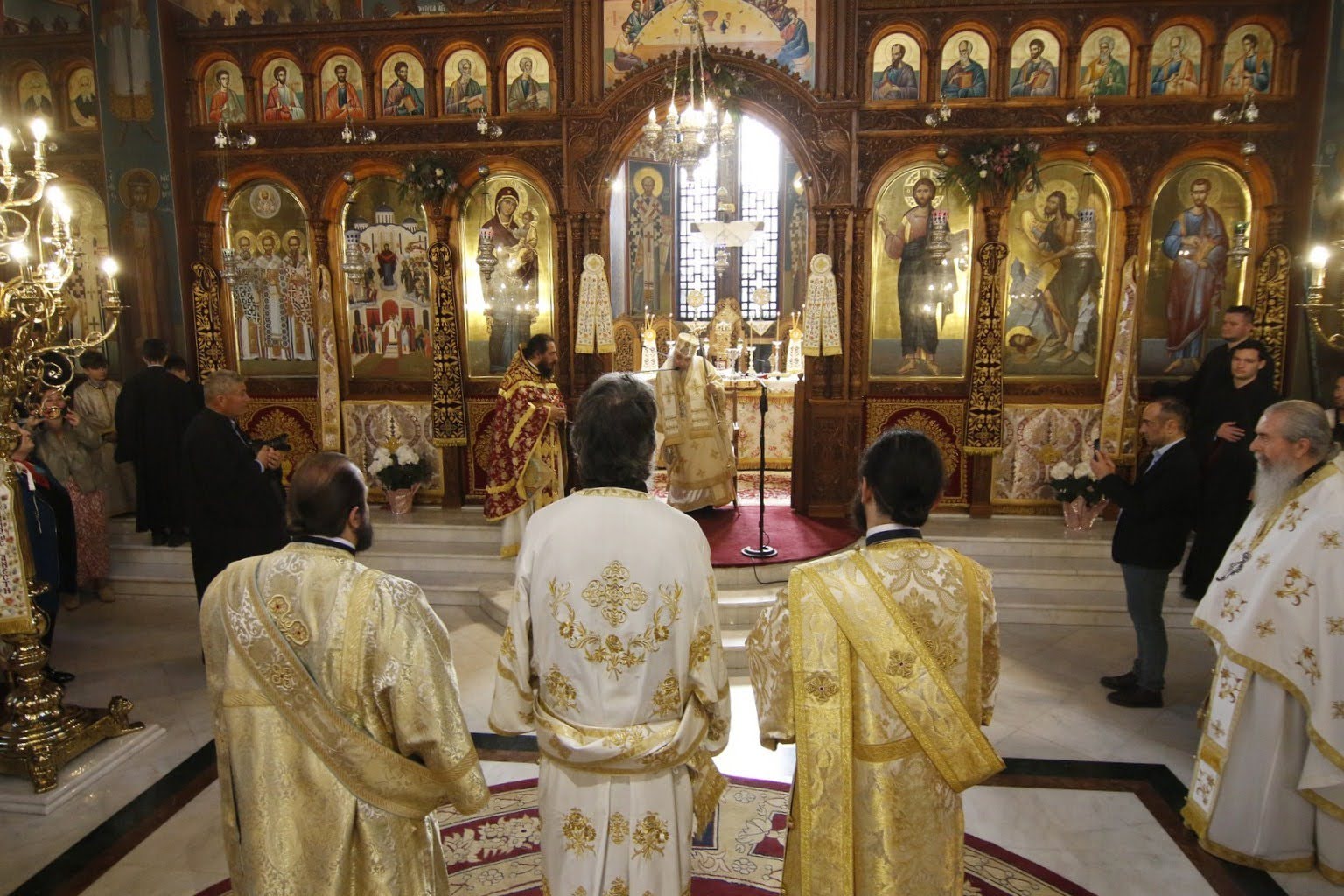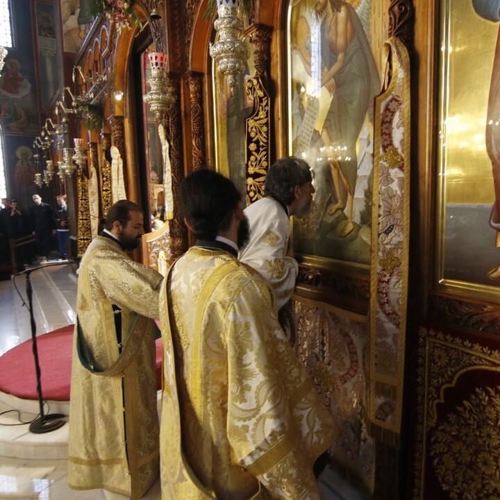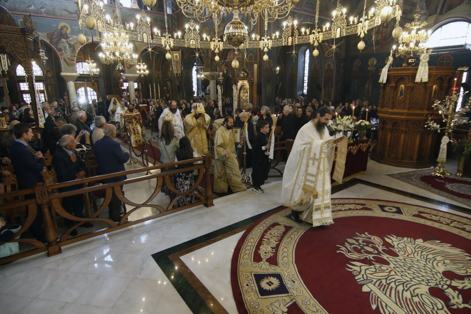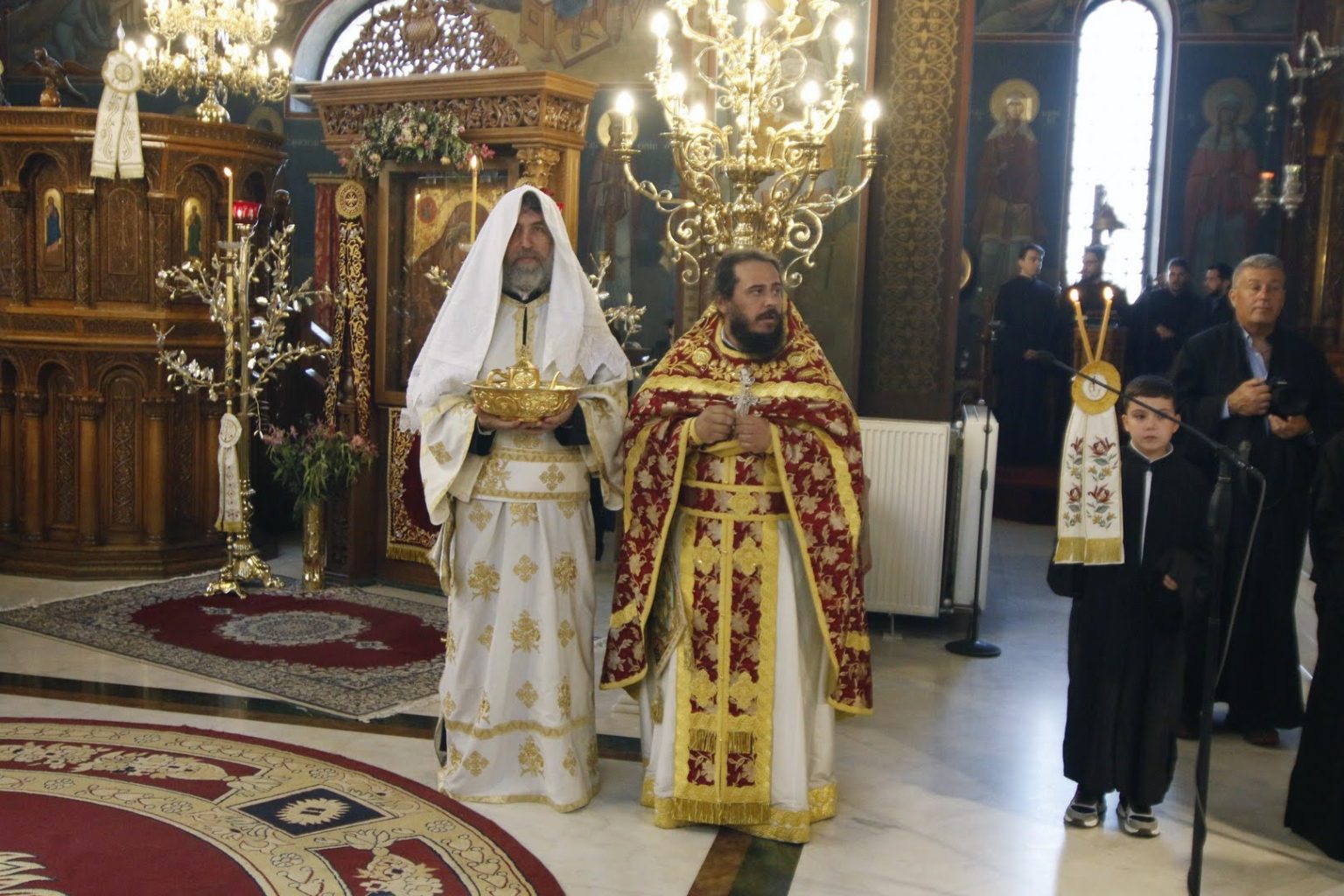 Με τον Σεβασμιώτατο συλλειτούργησαν ο Πρωτοσύγκελλος της Ιεράς Μητροπόλεως, ο Ιεροκήρυξ της Ιεράς Μητροπόλεως, Αρχιμανδρίτης Παντελεήμων Καραλάζος, ο Γενικός Αρχιερατικός Επίτροπος, Πρωτοπρεσβύτερος Γεώργιος Ζουμής, ο Προϊστάμενος του Ιερού Καθεδρικού Ναού, Αρχιμανδρίτης Χριστόδουλος Καραγιάννης, ο Αρχιδιάκονος της Ιεράς Μητροπόλεως, Θεόφιλος Γαργάλας, και ο Διάκονος Ιωάννης Γκερτσάκης. Ο π. Ευθύμιος θα διακονεί στον Ιερό Καθεδρικό Ναό της Αγίας Σκέπης.
