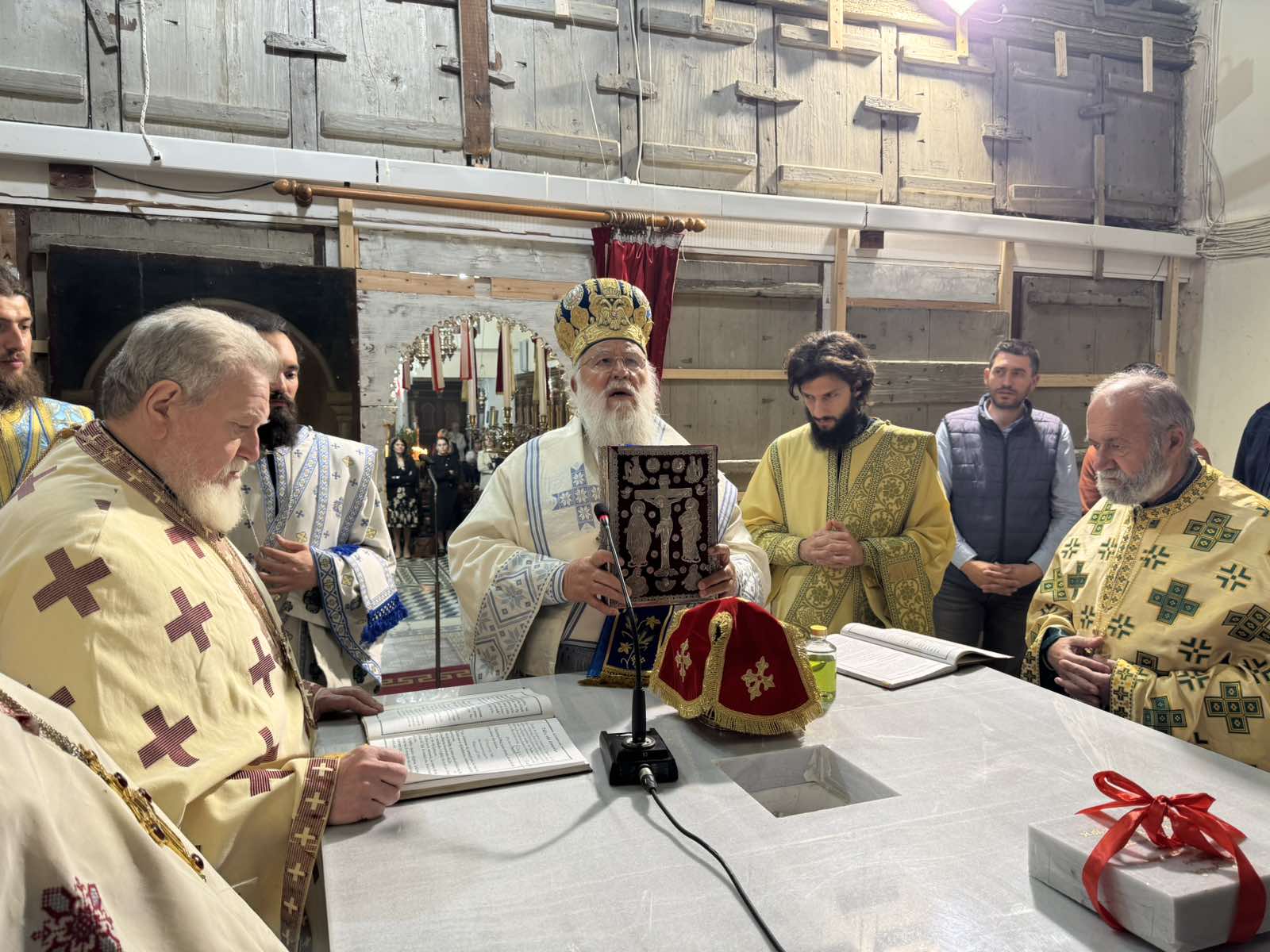 Κατά την ομιλία του, ο Σεβασμιώτατος, απευθυνόμενος στο πυκνό εκκλησίασμα, επεξήγησε τα τελούμενα και αναφέρθηκε στη βαθιά πνευματική σημασία του καθαγιασμού της Αγίας Τραπέζης, τονίζοντας ότι πρόκειται για μία ιερά πράξη, άρρηκτα συνδεδεμένη με την ίδια τη ζωή της Εκκλησίας. Υπενθύμισε ότι η Ανάσταση του Χριστού αποτελεί το θεμέλιο της πίστεώς μας, καθώς ο Κύριος κατήργησε το θάνατο και χάρισε στον άνθρωπο τη δυνατότητα της μετοχής στην αιώνια ζωή. Μέσα σε αυτό το αναστάσιμο φως, η Εκκλησία συνεχίζει την αποστολική της πορεία, καθώς οι Απόστολοι, υπακούοντας στην εντολή του Κυρίου «πορευθέντες μαθητεύσατε πάντα τὰ ἔθνη» (Μτ. 28, 19), ίδρυσαν κατά τόπους Εκκλησίες και έπηξαν θυσιαστήρια, τα οποία αποτελούν έως σήμερα το κέντρο της λατρευτικής ζωής.