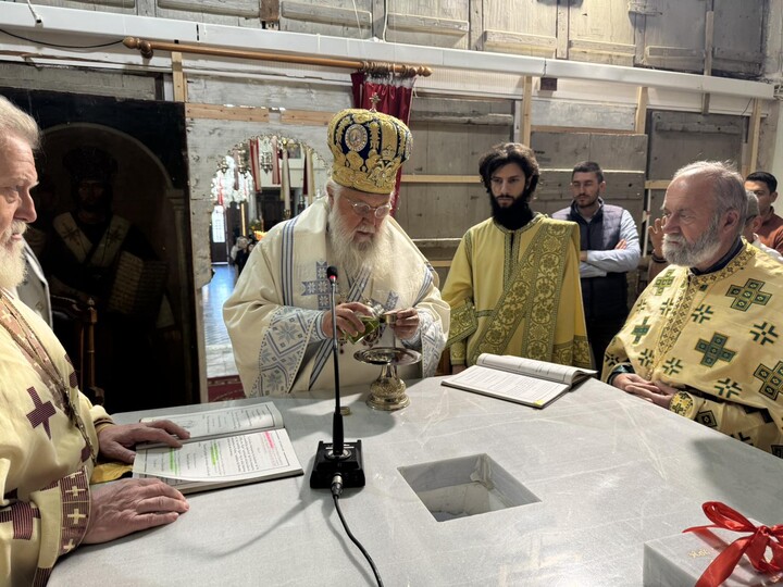 Ο Σεβασμιώτατος επεσήμανε ότι το Ιερό Θυσιαστήριο δεν είναι ένα απλό κατασκεύασμα, αλλά ο τόπος όπου τελείται η αναίμακτος θυσία και όπου ο άνθρωπος αγιάζεται και σώζεται διά της Θείας Ευχαριστίας. Υπογράμμισε ακόμη ότι η χάρη του Αγίου Πνεύματος είναι εκείνη που καθαγιάζει και ζωοποιεί τα πάντα μέσα στην Εκκλησία, ενώ η παρουσία των Ιερών Λειψάνων των Αγίων Μαρτύρων υπενθυμίζει τη ζωντανή συνέχεια της πίστεως και τη μαρτυρία εκείνων που θυσίασαν τη ζωή τους για το Χριστό. Έτσι, κάθε πράξη της Εκκλησίας γίνεται ευκαιρία δοξολογίας και ευχαριστίας προς το Θεό, ο οποίος αγιάζει και ανακαινίζει τον άνθρωπο και την κτίση.