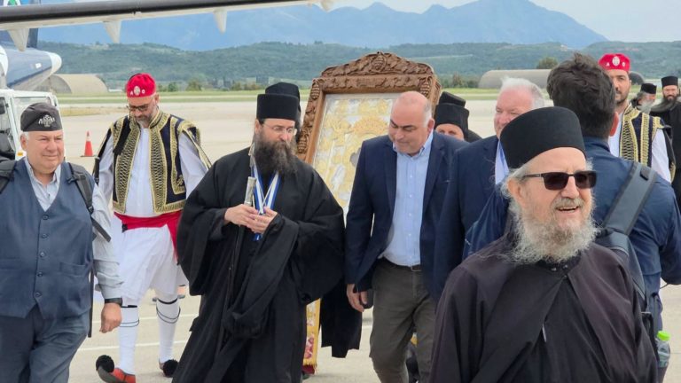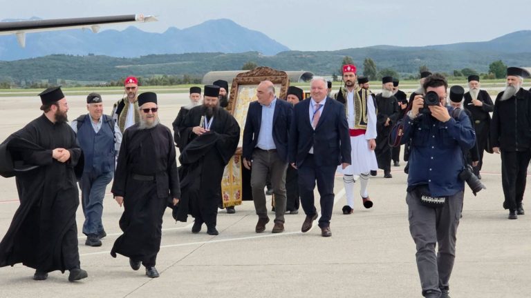 Με βαθιά συγκίνηση και ευλάβεια, η Ιερά Εικόνα της Παναγίας «Άξιον Εστί» ξεκίνησε το μεγάλο της ταξίδι από τη Δάφνη του Αγίου Όρους, αφήνοντας πίσω της την ιερή γαλήνη του τόπου όπου φυλάσσεται αιώνες τώρα.