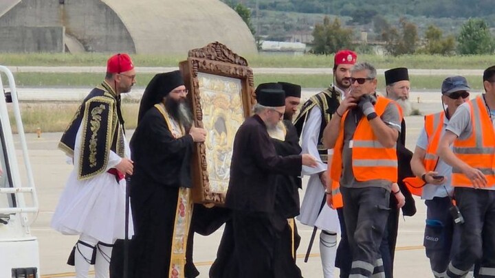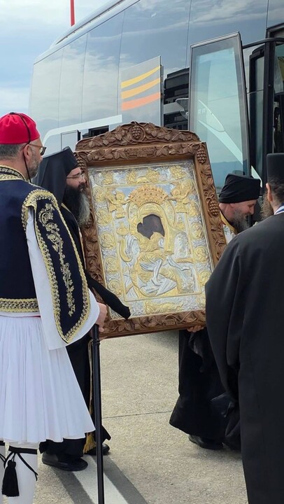 Τη Θαυματουργή Εικόνα της Παναγίας «Άξιον Εστί» υποδέχθηκε η Αιτωλοακαρνανία, η οποία αφίχθη το μεσημέρι της Πέμπτης (30/4) στο αεροδρόμιο του Ακτίου–Βόνιτσας..